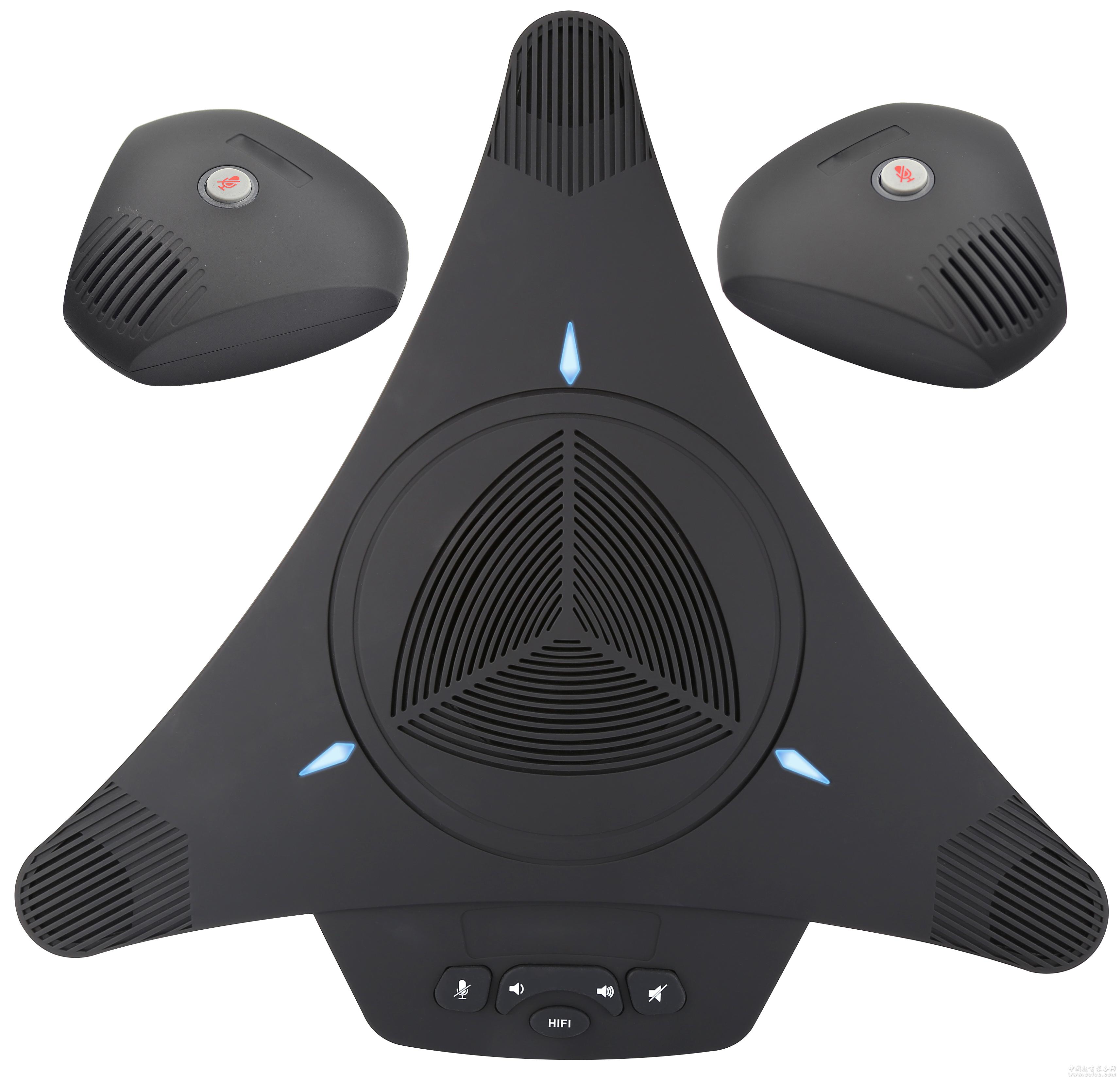 產品詳細介紹視頻會議全向麥克風采用USB免驅動設計,5顆雙電容麥克風同步工作,使收音更靈敏;內置大功率中低音揚聲器,采用目前最選進的256ms回音消除算法,內置語音自動增益平衡(ALC)功能,增加了2臺可移動式單指向麥克風,適用于比較狹長的會議室,無論發言者離的遠近都能很清晰的拾取到聲音。360度全指向高靈敏度雙電容麥克風,20-60平方米內收音無死角,一人開會時可自由走動,多人會議時,每個人都可以安心坐在自己的位置上,不需特別靠近或是移動全向麥克風。適用于各種視頻會議和即時通訊軟件,即插即用。