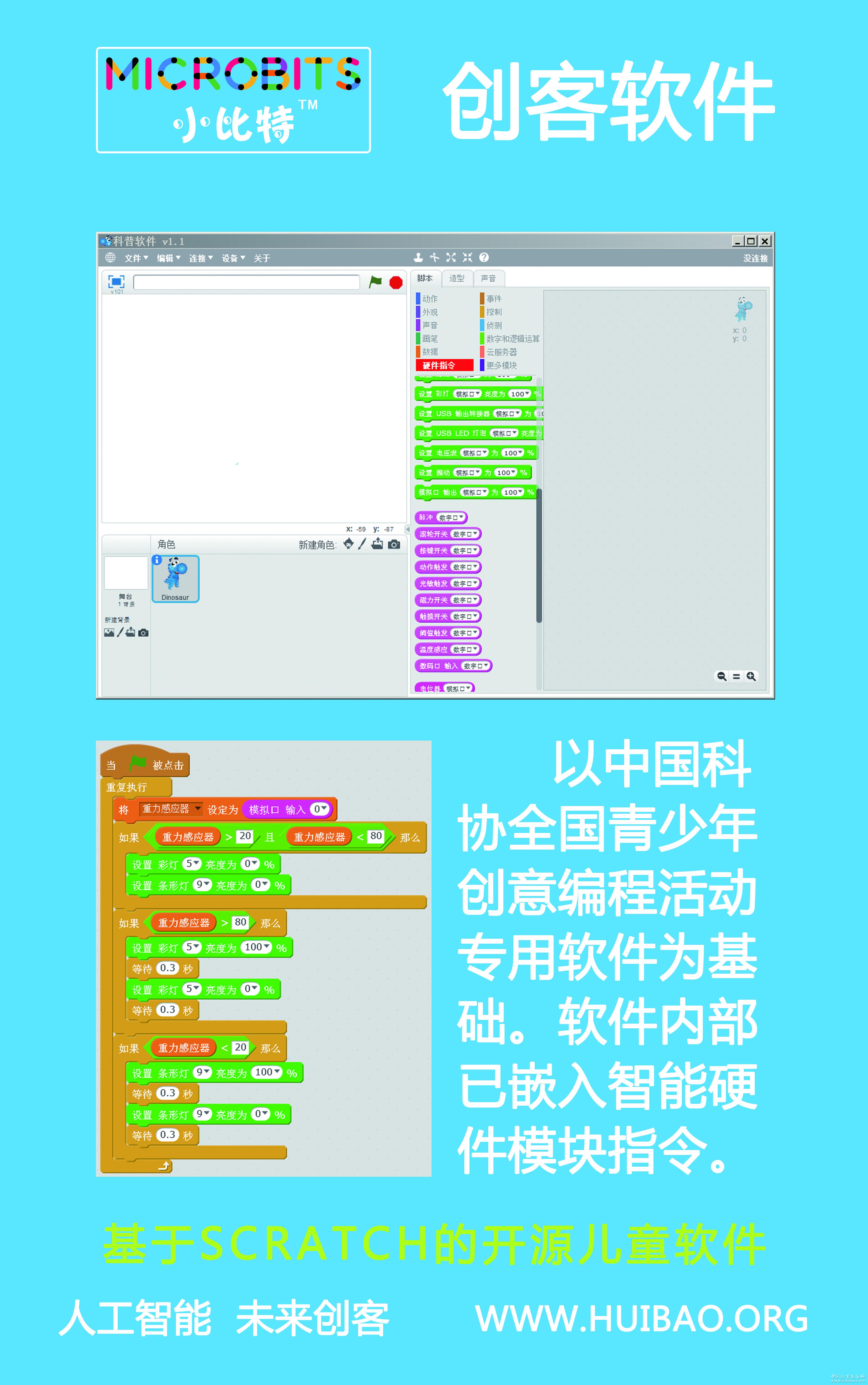 一、研發(fā)理念 2017年,國務(wù)院印發(fā)的《新一代人工智能發(fā)展規(guī)劃》明確提出:“實(shí)施全民智能教育項(xiàng)目,在中小學(xué)階段設(shè)置人工智能相關(guān)課程,逐步推廣編程教育......”在科技部、北京市科委等部門指導(dǎo)下,我公司研發(fā)的《人工智能》課程以STEAM教育理念為指導(dǎo),以工程機(jī)械原理為基礎(chǔ),以智能電子技術(shù)應(yīng)用為主體,以創(chuàng)意編程為方向,以未來創(chuàng)客為培養(yǎng)目標(biāo)。 二、課程說明 本套課程由標(biāo)準(zhǔn)化教材、器材套件、專用軟件、模型搭建視頻及圖紙、課程相關(guān)圖片等教學(xué)課件組成,教學(xué)資料完備,解決了教師備課的困擾。智能模塊可以將復(fù)雜的聲、光、電等物理現(xiàn)象通過磁吸積木方式直觀呈現(xiàn),也可借助基于Arduino的配套主板和基于Scratch的圖形化軟件,通過編程方式來實(shí)現(xiàn)復(fù)雜的智能控制。課程設(shè)計(jì)適合零基礎(chǔ)起點(diǎn)的學(xué)生和成人,從智能模塊的應(yīng)用到創(chuàng)意編程的學(xué)習(xí),實(shí)現(xiàn)智能模塊-創(chuàng)意編程-智能控制的培養(yǎng)路徑。 三、適用對象 課程內(nèi)容普遍適用于中小學(xué)、科技館、少年宮、培訓(xùn)機(jī)構(gòu)、活動(dòng)中心、師資培訓(xùn)中心等。中小學(xué)可結(jié)合計(jì)算機(jī)、綜合實(shí)踐、科學(xué)、物理等學(xué)科開設(shè)本課程,或獨(dú)立開設(shè)電子創(chuàng)客課程。《編程套裝》產(chǎn)品的編程主板和軟件均為開源設(shè)計(jì),方便初學(xué)者和零基礎(chǔ)的學(xué)生使用,適合中小學(xué)電子創(chuàng)客基礎(chǔ)性普及教育,學(xué)校開設(shè)起始年級(jí)建議為小學(xué)三年級(jí)以上。 四、產(chǎn)品構(gòu)成 本套課程產(chǎn)品由標(biāo)準(zhǔn)化教材兩冊(2018年升級(jí)為四冊)、零件圖卡、器材零件142種582個(gè)(包含常用智能模塊)、400分鐘模型搭建視頻及圖片課件等組成。教材課時(shí)總量40課,課時(shí)建議40-60分鐘。 |