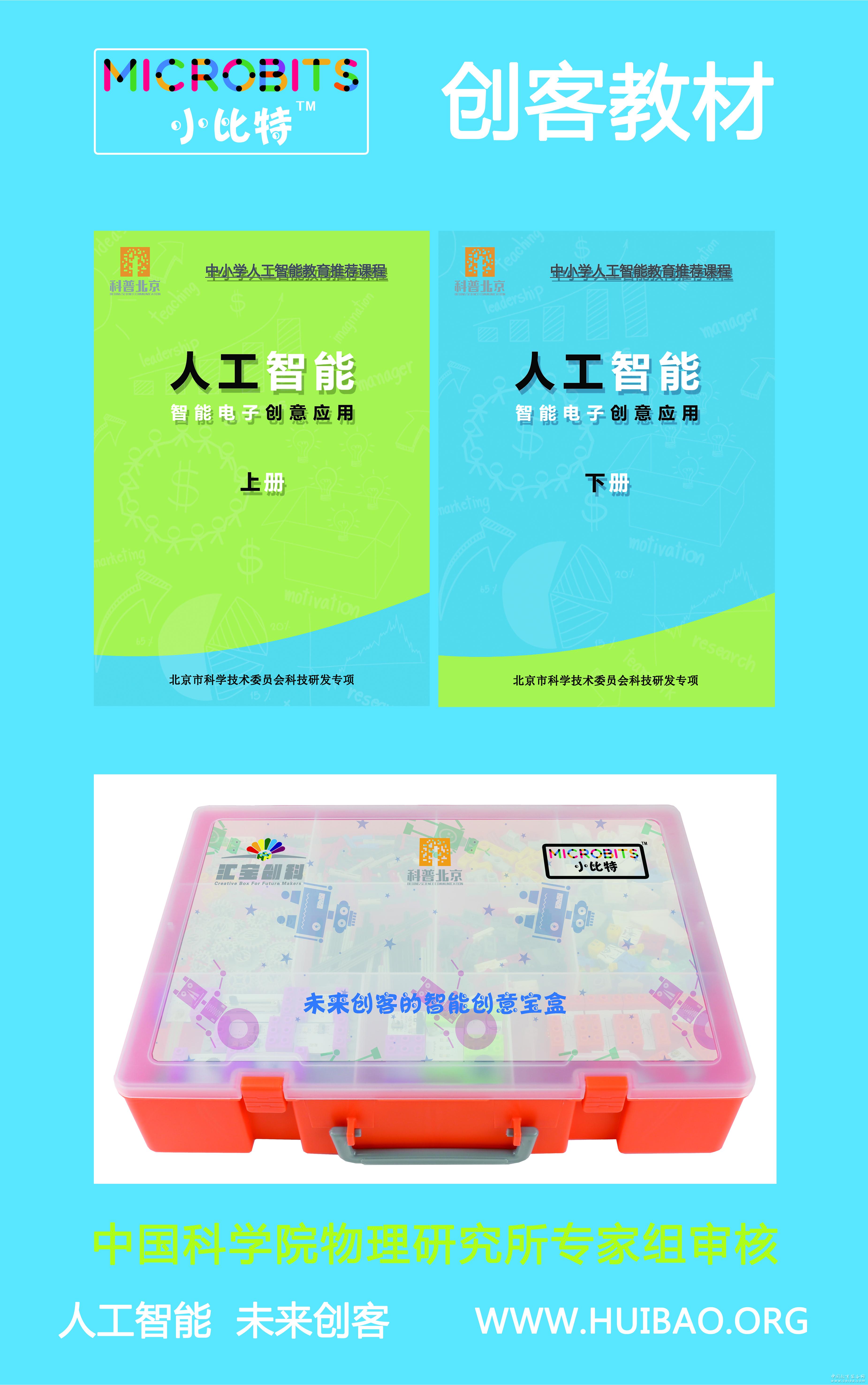一、研發理念 2017年,國務院印發的《新一代人工智能發展規劃》明確提出:“實施全民智能教育項目,在中小學階段設置人工智能相關課程,逐步推廣編程教育......”在科技部、北京市科委等部門指導下,我公司研發的《人工智能》課程以STEAM教育理念為指導,以工程機械原理為基礎,以智能電子技術應用為主體,以創意編程為方向,以未來創客為培養目標。 二、課程說明 本套課程由標準化教材、器材套件、專用軟件、模型搭建視頻及圖紙、課程相關圖片等教學課件組成,教學資料完備,解決了教師備課的困擾。智能模塊可以將復雜的聲、光、電等物理現象通過磁吸積木方式直觀呈現,也可借助基于Arduino的配套主板和基于Scratch的圖形化軟件,通過編程方式來實現復雜的智能控制。課程設計適合零基礎起點的學生和成人,從智能模塊的應用到創意編程的學習,實現智能模塊-創意編程-智能控制的培養路徑。 三、適用對象 課程內容普遍適用于中小學、科技館、少年宮、培訓機構、活動中心、師資培訓中心等。中小學可結合計算機、綜合實踐、科學、物理等學科開設本課程,或獨立開設電子創客課程�!毒幊烫籽b》產品的編程主板和軟件均為開源設計,方便初學者和零基礎的學生使用,適合中小學電子創客基礎性普及教育,學校開設起始年級建議為小學三年級以上。 四、產品構成 本套課程產品由標準化教材兩冊(2018年升級為四冊)、零件圖卡、器材零件142種582個(包含常用智能模塊)、400分鐘模型搭建視頻及圖片課件等組成。教材課時總量40課,課時建議40-60分鐘。 |
