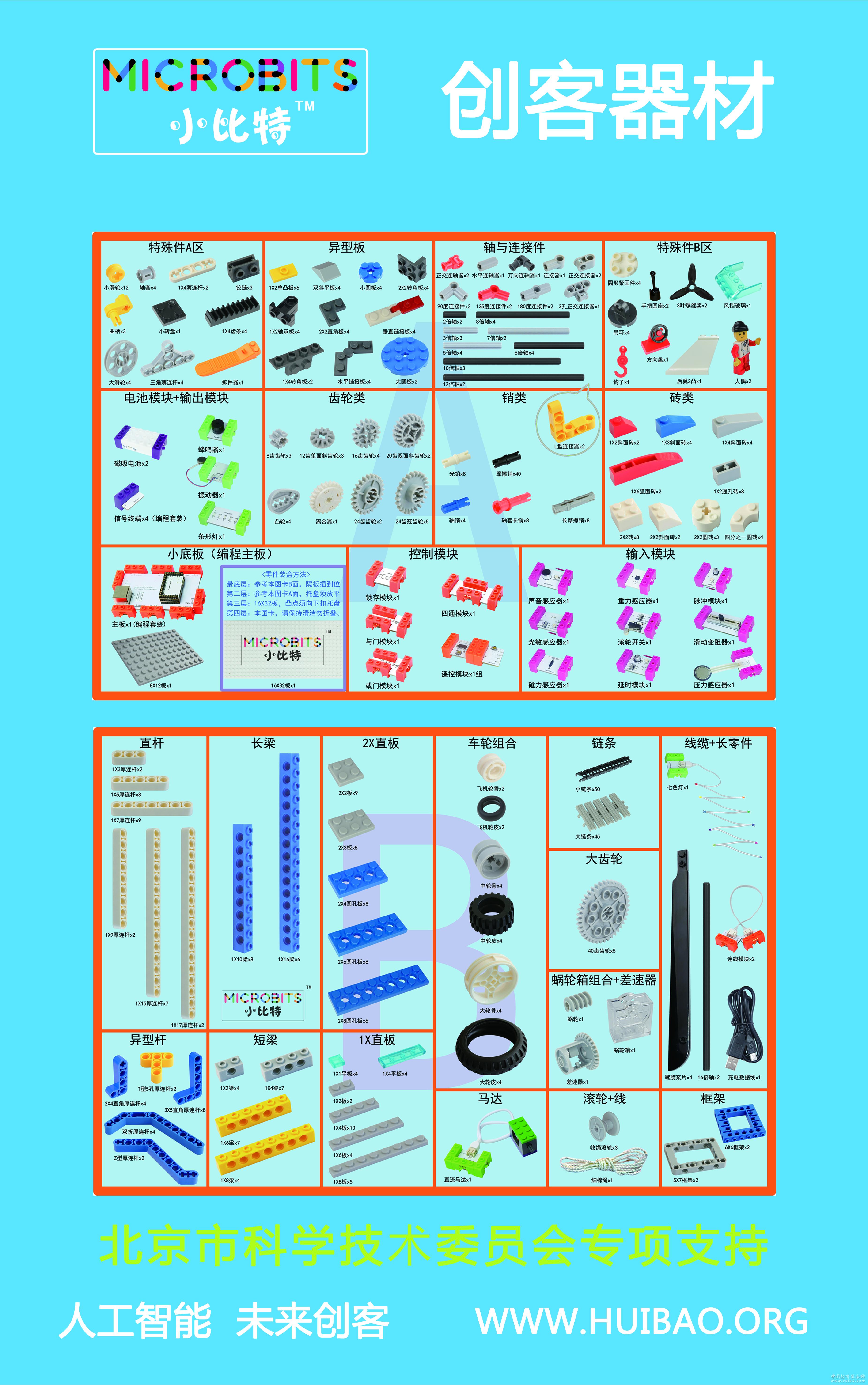一、研發理念 2017年,國務院印發的《新一代人工智能發展規劃》明確提出:“實施全民智能教育項目,在中小學階段設置人工智能相關課程,逐步推廣編程教育......”在科技部、北京市科委等部門指導下,我公司研發的《人工智能》課程以STEAM教育理念為指導,以工程機械原理為基礎,以智能電子技術應用為主體,以創意編程為方向,以未來創客為培養目標。 二、課程說明 本套課程由標準化教材、器材套件、專用軟件、模型搭建視頻及圖紙、課程相關圖片等教學課件組成,教學資料完備,解決了教師備課的困擾。智能模塊可以將復雜的聲、光、電等物理現象通過磁吸積木方式直觀呈現,也可借助基于Arduino的配套主板和基于Scratch的圖形化軟件,通過編程方式來實現復雜的智能控制。課程設計適合零基礎起點的學生和成人,從智能模塊的應用到創意編程的學習,實現智能模塊-創意編程-智能控制的培養路徑。 三、適用對象 課程內容普遍適用于中小學、科技館、少年宮、培訓機構、活動中心、師資培訓中心等。中小學可結合計算機、綜合實踐、科學、物理等學科開設本課程,或獨立開設電子創客課程。《編程套裝》產品的編程主板和軟件均為開源設計,方便初學者和零基礎的學生使用,適合中小學電子創客基礎性普及教育,學校開設起始年級建議為小學三年級以上。 四、產品構成 本套課程產品由標準化教材兩冊(2018年升級為四冊)、零件圖卡、器材零件142種582個(包含常用智能模塊)、400分鐘模型搭建視頻及圖片課件等組成。教材課時總量40課,課時建議40-60分鐘。 |