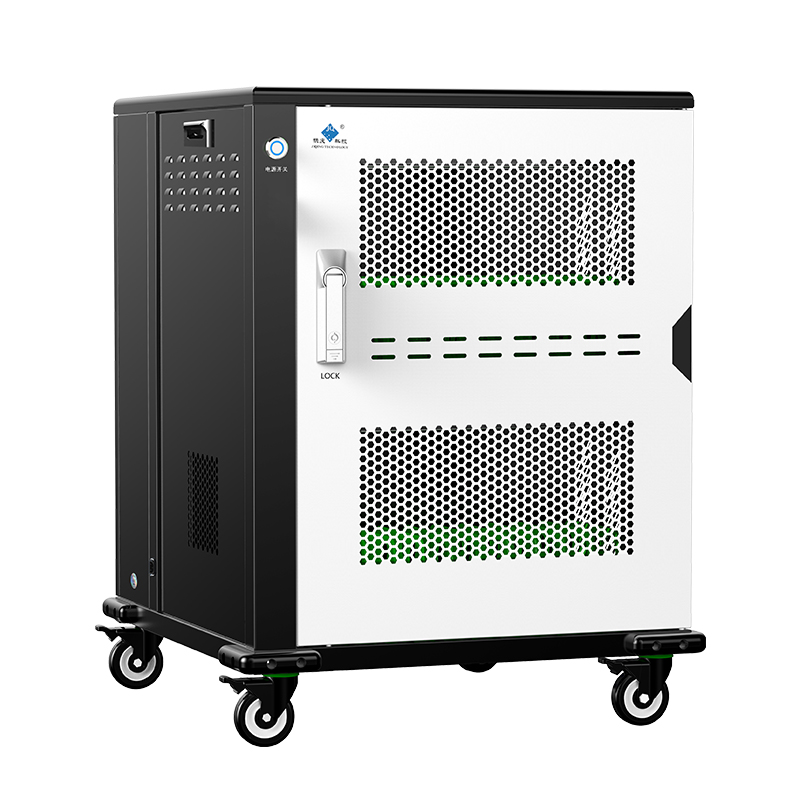 產品詳細介紹品牌:際慶科技 型號:NB24 NB24招標(應標)參數: 功能參數: 1、★AC 110V-240V電源插座24個,兼容各類筆記本設備24臺,配合原裝適配器充電; 2、★金屬按鈕開關,可過15A以上大電流,兼具電源開關和通電指示功能,單120mm風扇,搭配智能溫控系統,30℃±8自動啟停 ; 3、★主動式PEC節能開關電源,柜內置十重安全保護①雷擊保護②浪涌保護③過載保護④漏電保護⑤隔離保護⑥過流保護⑦過壓保護⑧短路保護⑨過充保護⑩灌流保護; 4、★自動消毒功能,紫外線+臭氧O₃雙重消毒,搭配金屬按鈕開關,啟動25min后自動關閉(選配項); 5、★定時充電具有電子顯示屏/多組設置/精準定時/倒計時設置(根據使用習慣隨意設定啟停時間段)(選配項)。 結構參數: 1、★外形尺寸≤ 590*784*620mm(含腳輪、防撞角),工位容積為413*245/307*36mm ,頂邊圓弧(≥R8)設計; 2、★兩側設有ABS工程提手,柜體四個底角加裝凸高15mm軟塑防撞角,配裝 4個3寸帶剎車天然橡膠靜音腳輪(高度105mm); 3、★二層式黑色+白色經典搭配,12(每層)工位設計,配裝ABS綠色隔斷,前后門為帶鎖單開門,前門為設備存放區域,后門為電源管控區域; 4、★前后門板與側板設有對流孔,通風散熱。 產品資質: ①★整機CCC認證(原廠蓋章證明) ②★具有商標(國際分類20和9)證書(原廠蓋章證明) ③★具有ISO9001:2015質量管理體系認證(原廠蓋章證明) ④★具有產品專利證書(原廠蓋章證明)