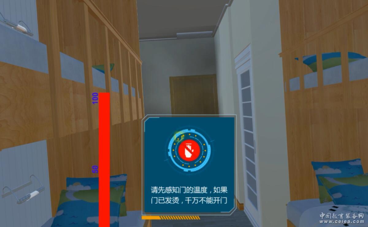 產(chǎn)品詳細介紹時空門VR學生宿舍火災逃生 一﹑概述 本系統(tǒng)利用虛擬現(xiàn)實技術制作三維宿舍環(huán)境,并模擬火災發(fā)生及模擬逃生路線和應該采取哪些逃生措施。 用戶可以利用VR眼鏡體驗更加真實的火災場景。和一般的模擬逃生場景相比,真實度,感知度,趣味性,交互性更強。而且體驗成本更低,不需要搭建復雜真實的火災環(huán)境,不受位置限制,更加安全,隨時隨地都可以體驗。