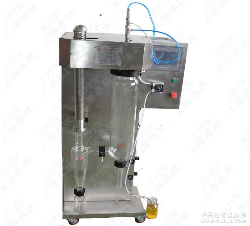 產品詳細介紹主要特征: 1.小型噴霧干燥機采用彩色大觸摸屏操作,全自動控制和手動控制相結合,十段程序控溫,自帶記憶功能,國內唯一: 2.全自動控制:一鍵式開機,設定噴霧工藝參數后,溫度到達預定溫度,蠕動泵自行啟動,觸摸屏上顯示運行動畫,運行流程清晰顯示;關機時只需按停止鍵,機器自動安全關機。 3.手動控制:如需在實驗過程對工藝參數進行調整,可方便切換至手動狀態,整個實驗過程彩色觸摸屏動態顯示(動畫)。 4.關機保護功能:關機時只需按停止鍵,機器除風機外立即停止運行,保證設備不會因為誤操作(強行關風機)而導致加熱部分燒壞。 5.噴霧、烘干及收集系統采用透明的優質高硼硅耐熱玻璃材料制造,使得噴霧干燥過程在無污染及最穩定的環境下進行,且使整個噴霧干燥實驗進程可直接觀察,為科研人員掌控實驗進程及實驗結果提供了極大的便利,并能及時發現解決問題。所有玻璃元件易拆卸,易清洗。 6.小型噴霧干燥機內置進口全無油空壓機,噴粉的顆徑呈正態分布,流動性非常好,而且噪音非常低,小于60db,符合國家實驗室噪音標準; 7.二流體噴霧的霧化結構,整機采用優質不銹鋼材料精密制造,設計緊湊,無需附屬設備,方便使用,歷久如新。 8.為了滿足用戶在實驗范圍調節各項參數的要求,在干燥溫度控制的設計上采用實時調控PID恒溫控制技術,使全溫區控溫準確,加熱控溫精度±1℃。 9.為了保持樣品的純凈,配備了進風口過濾器。 10.進料量可通過進料蠕動泵調節,最小樣品量可達50ml。磁力攪拌器可選 11.干燥后的成品干粉,其顆粒度較均勻,95%以上的干粉在同一顆粒度范圍。 12.小型噴霧干燥機針對黏性物料,設有噴咀清潔器(通針),在噴咀被堵塞時,會自動清除,通針的頻率可自動調整; 13.創新的塔壁吹掃裝置,物料回收率更高。 14.自動清掃功能,大大加強干燥樣品回收率。 15.干燥塔自動清洗功能,無需手動清洗,大大節省實驗時間。