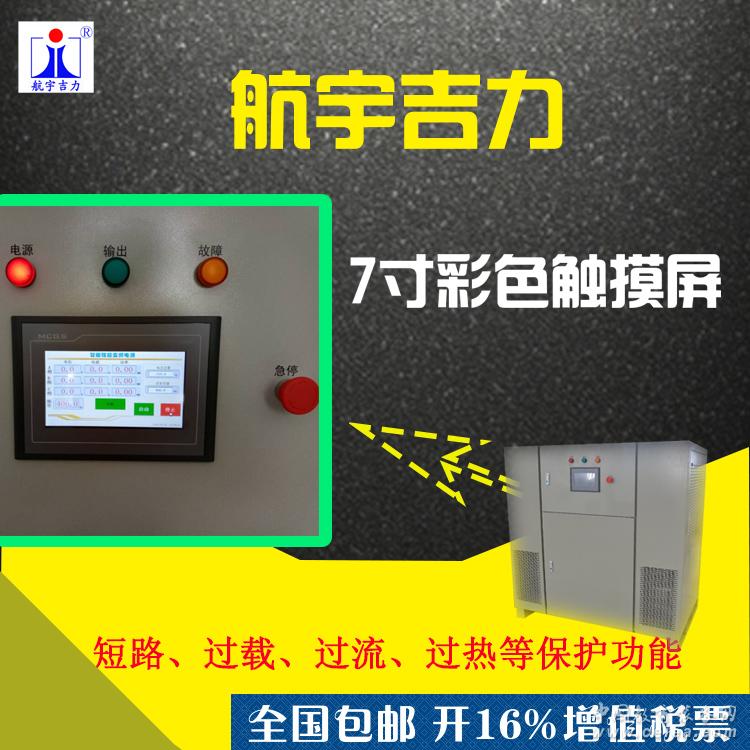 產品詳細介紹.2適用范圍 中頻靜變電源適用于軍用電力供應系統、航空、航天工業應用產品的技術維護。解決方案具有快速、高質量的優勢,使用領域延伸到工業、軍用、航空、及航天領域。廣泛應用于航空航天、地面雷達站、艦船、潛艇、計算機站、軍事精密儀器儀表和進口設備的電源中頻電源JL400-33090觸摸屏顯示電源技術參數: 型號 JL400-33090 輸出容量 90kw 工作方式 IGBT/PWM 電源輸入 三相四線+PE AC380V±15% 輸入頻率 50Hz/60Hz±5% 輸出相數 三相四線+PE 輸出電壓 115V/200V電壓可調(10.0V-135.0V) 輸出頻率 300.0~500.0HZ可調,調節步幅為0.1HZ 固定頻率 400HZ 頻率精度 ≤0.1% 頻率穩定度 ≤0.01% 輸出電壓失真度 ≤2.0% 動態特性 100%突然卸負載,電壓突變≤5%,恢復時間20ms 過載能力 提供1.5倍過載,120%/1小時,150%/分鐘 200%/15秒 保護 短路保護,過載保護,過流保護,過欠壓保護,功率器件過熱保護 顯示方式 7寸彩色觸摸屏(帶指示燈及急停) 效率 ≥85% 工作環境 溫度:-20℃~45℃ 相對濕度:≤90%RH