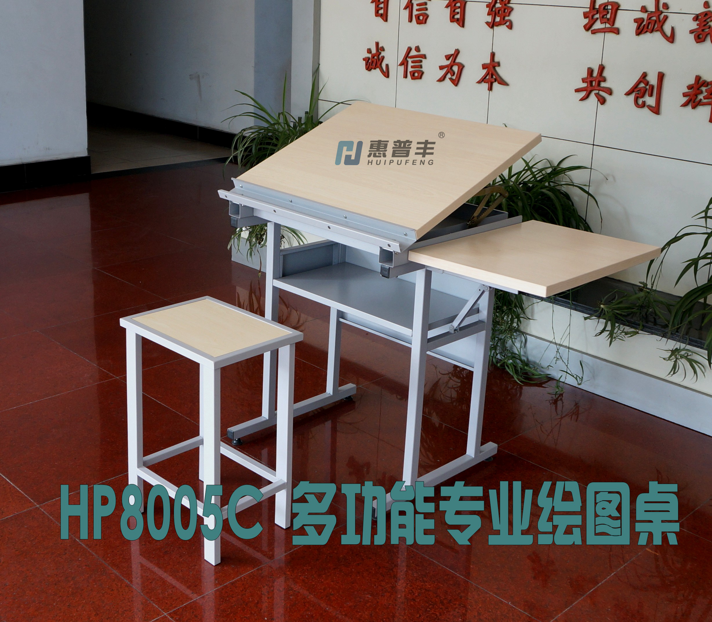 外形尺寸:1100×610×800mm 主桌面尺寸:700×550mm 副桌面:400×550mm可折疊下掛 高度尺寸:800mm 桌體材質:國標優質鋼矩管及鋼板 表面處理:環保淺灰色噴塑 桌面材質:E1級顆粒飾面板(25mm厚度) 桌面承重:≥60公斤 工作坡度:0-80° 儲物空間:可折疊副桌面、儲物箱、擱板等 落腳方式:矩管下裝可調節膠木螺墊 質保時間:3年 |