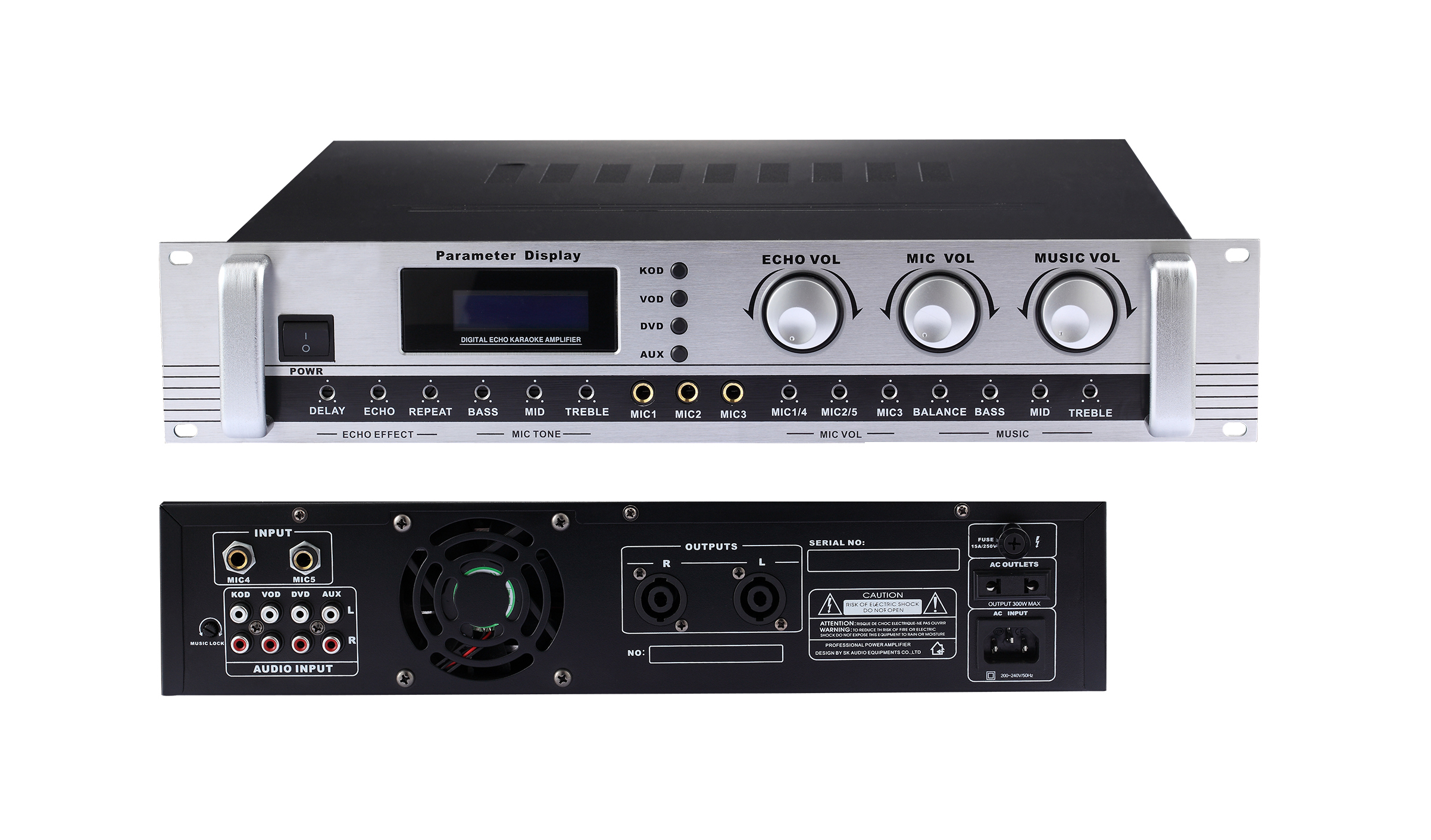 產品詳細介紹1、多種DSP卡拉OK演唱模式、4種音樂DSP預設模式可供選擇,帶卡拉OK激勵效果,單片機控制,性能穩(wěn)定可靠。 2、藍色背光LCD液晶顯示調節(jié)參數(shù)LED專業(yè)顯示屏專業(yè)級數(shù)碼回聲電路,使人聲更加豐富自然。 3、整體設計根據(jù)卡商業(yè)使用要求,其音量、音色及效果采用隱藏式調節(jié),保證工作可靠。 4、強制冷風扇加強本機的散熱,滿足長時間工作。 5、★前后扳均設有麥克風輸入插孔,從整體美觀到工作安裝都極為方便。 6、★適合KTV包房、多媒體教室、會議室使用。 7、輸出功率:2×200W |