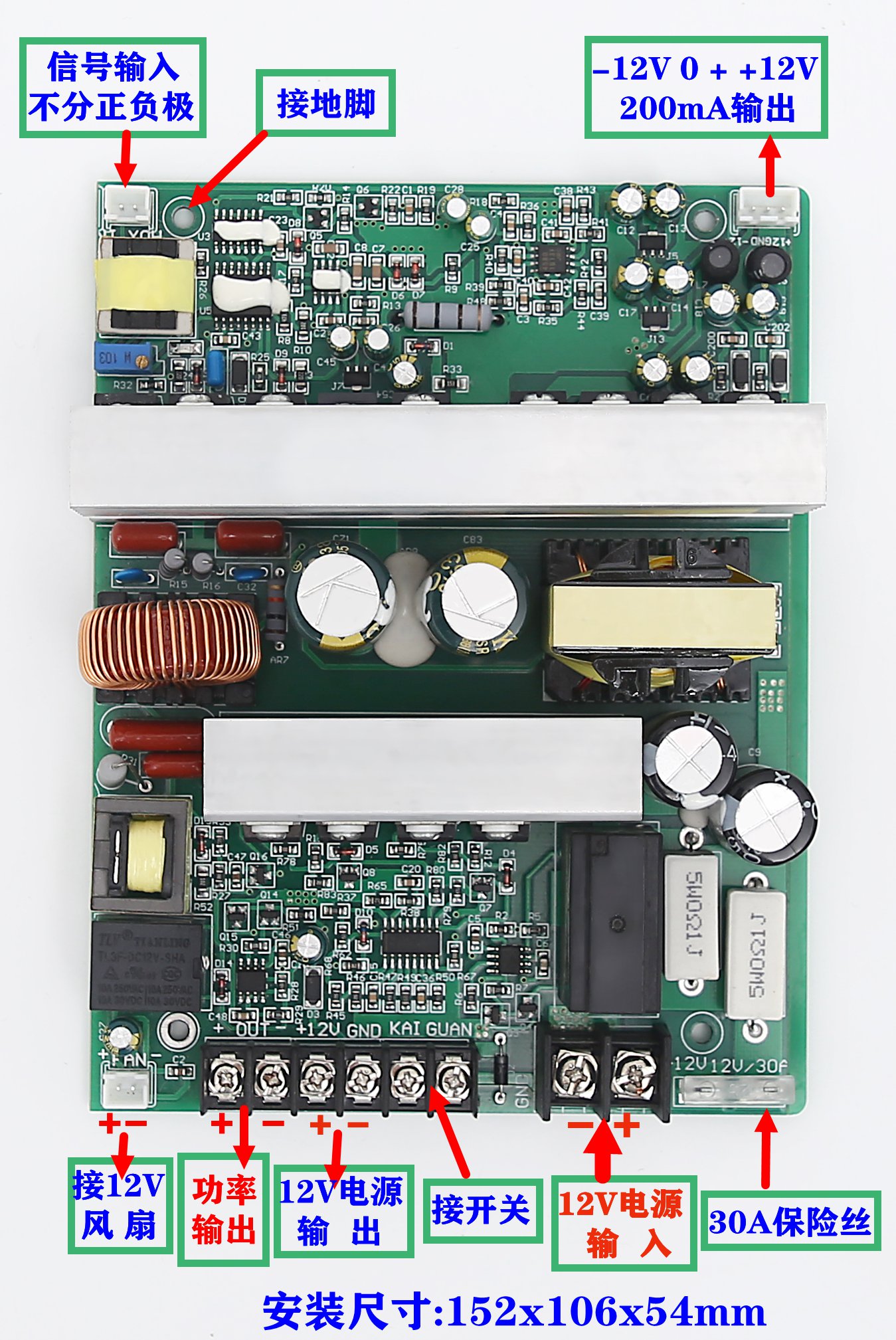 產品詳細介紹廣場舞數字功放模塊 ,公司設計、開發(fā)和批量生產并出口的成熟、穩(wěn)定、可靠的2019版第六代產品。采用直流供電,應用DC-DC升壓技術。體積小、重量輕、功率大。性能穩(wěn)定、音質清晰、信噪比高、失真度低,低溫工作等特點。其功能可根據整機廠的要求設計生產,是開發(fā)新產品、升級產品、節(jié)約開發(fā)周期的理想配套產品。 特性指標:       信 號 輸 入:0 dB (0.77V) 效  率:89 %       額定輸出功率:50W/100W/150W/200W/250W/300W可根據需要選擇        定 阻  輸 出:4-16Ω         供 電  電 壓:直流12V/24V/36V/48V56V/68V/80V可根據需要選擇電壓        頻         寬:20Hz-20KHz        信   噪   比:87 db        失    真   度: 1KHz  0.1%  100w4-8Ω 輸入、輸出接口: 溫度保護: 當散熱器溫度達到90度時,保護電路工作,功放沒有輸出。