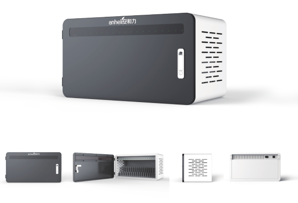 充電柜外部設有繞線架及電源插座,方便用戶給筆記本、手機充電,柜體底部配有超靜音減震萬向輪及剎車輪配合機柜扶手使用,方便充電柜移動; |