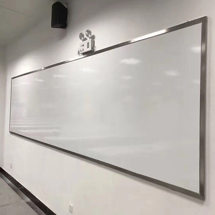 不銹鋼白板的優(yōu)點: 1. 進口樹脂板面也可根據(jù)需求貼字畫線,線條永久性不掉色。 2. 不銹鋼邊框高檔大方,抗刮痕,易清潔。 3. 隱形安裝,既不影響美觀,也安全可靠,可安裝室內,也可安裝室外。