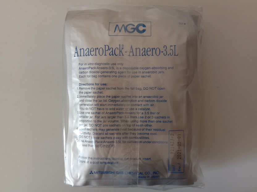 產(chǎn)品詳細(xì)介紹有批發(fā)價(jià)格,1包即可按批發(fā)價(jià)格供應(yīng),含13%專票運(yùn)費(fèi),具體批發(fā)價(jià)格請您咨詢北京緣生化科技有限公司安經(jīng)理。 北京緣生化科技有限公司作為專業(yè)培養(yǎng)產(chǎn)品供應(yīng)商,產(chǎn)品涵蓋培養(yǎng)類大多數(shù)品牌,有著多年的客戶服務(wù)經(jīng)驗(yàn),歡迎您的咨詢。在產(chǎn)品質(zhì)量上,物流快遞發(fā)貨方面(8:00-20:00)均可發(fā)貨,不耽誤您的寶貴時(shí)間。包裝包裹嚴(yán)實(shí),保證產(chǎn)品質(zhì)量。含運(yùn)費(fèi)并提供13%專票。 基本程序 :“培養(yǎng)基配制--倒平皿--滅菌--冷卻--接種--放入適合容器--放產(chǎn)氣袋(完全厭氧可同時(shí)放置指示劑)--密封--放入普通培養(yǎng)箱--調(diào)節(jié)適合的培養(yǎng)溫度,即可。配套提供的密封罐或密封袋外觀透明,可隨時(shí)關(guān)注微生物生長情況,密封容器不打開則內(nèi)環(huán)境不會(huì)改變,足以維持整個(gè)培養(yǎng)過程。” - AnaeroPack·厭氧產(chǎn)氣袋(3.5L用),國內(nèi)代碼C-35,日本番號(hào)(型號(hào))D-06 AnaeroPackTM -Anaero 厭氧產(chǎn)氣袋(3.5L)使用說明書 產(chǎn)品用途: 配合密封罐使用,用于厭氧微生物的培養(yǎng)。本品可吸收容器中的全部O2,同時(shí)產(chǎn)生約21%的CO2。 每一個(gè)鋁塑包裝中含有一片紙袋(厭氧產(chǎn)氣袋)。 使用方法: 1. 將鋁塑包裝上側(cè)剪開,取出紙袋,紙袋不需要打開。 2. 立即將紙袋放入密封罐中,將密封罐蓋上。接觸空氣后將即刻吸收O2,產(chǎn)生CO2。不需要加水或使用催化劑。 3. 每袋AnaeroPackTM-Anaero 用于7.0升培養(yǎng)罐,根據(jù)培養(yǎng)罐的體積用2包,當(dāng)使用多袋AnaeroPackTM- Anaero時(shí),不要疊放在一起。 4. 用完的厭氧產(chǎn)氣袋可能會(huì)因?yàn)槭S喾磻?yīng)而產(chǎn)生熱量,請等它們變冷以后再丟棄。且不要跟易燃物丟在一起。 5. AnaeroPackTM- Anaero用于45℃以下培養(yǎng)使用。 儲(chǔ)藏方法: 密封,置陰涼干燥處保存。 保存期: 在鋁塑袋的右下角印有批號(hào)及失效期,請?jiān)谑谥笆褂谩?br/>生產(chǎn)商: 三菱瓦斯化學(xué)株式會(huì)社 MITSUBISHI GAS CHEMICAL CO., INC.