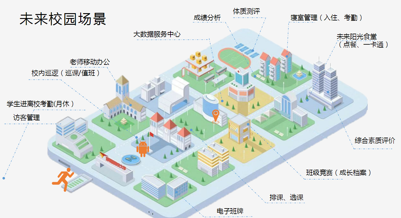 平臺價值: 統(tǒng)一的數(shù)據(jù)管理、用戶管理、資源管理和權(quán)限控制 全方位實現(xiàn)校園信息化,讓校園一切盡在掌握 加強校園管理,提高辦公效率 基礎(chǔ)數(shù)據(jù)靈活管理,智能查詢統(tǒng)計圖表 多樣化考評體系,對教職工和學生的評價更科學 多種溝通方式,實現(xiàn)家長、學校、老師、學生四位一體無縫對接 平臺簡單易用、易管理,可全面普及推廣 幫助校領(lǐng)導全面了解校園整體運營情況 為學校管理決策提供數(shù)據(jù)支持