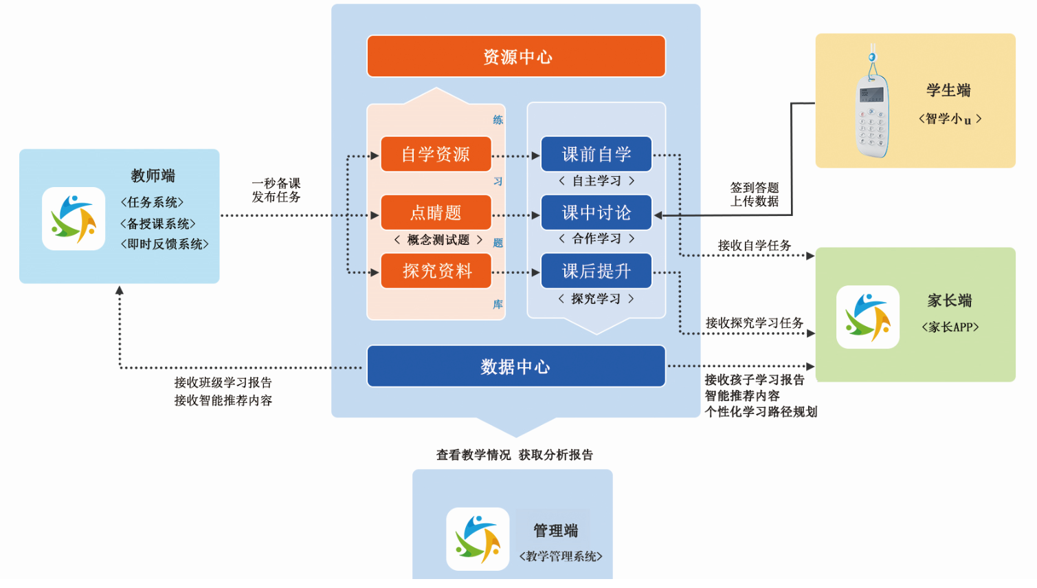 中小學核心素養解決方案,以U伴慧學高階思維精準教學平臺為主體,配套軟件、硬件、資源,調動教師、家長、教育管理者的積極參與共同培養學生核心素養。方案提倡課前自主學習、課中合作學習、課后探究學習的方式,學習內容和能力培養進階式深入,讓學生更深入學習知識內容,培養學生核心素養,實現學生的全面發展。