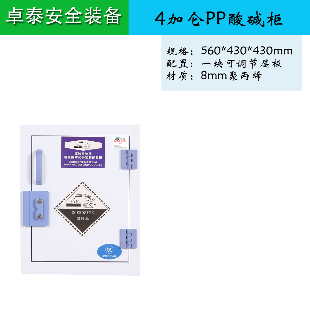 產(chǎn)品詳細(xì)介紹宿遷卓泰安全裝備銷售熱線: 銷售部:陳先生13851372037 業(yè)務(wù)部郵箱:[email protected] 官方網(wǎng)站:www.choitay.com PP酸堿柜具有耐強(qiáng)酸、強(qiáng)堿與抗腐蝕的特性。適用于實(shí)驗(yàn)室各類工具的洗滌對帶有化學(xué)特性的試劑瓶或其他物品進(jìn)行清洗。 產(chǎn)品特色: 1.具有耐強(qiáng)酸、強(qiáng)堿與抗腐蝕的特性。 2.降低環(huán)境污染,維護(hù)使用者的健康。 制作工藝: 1,柜體采用一體成型、無縫焊技術(shù),極大的加強(qiáng)了柜體的結(jié)構(gòu)性,有效的降低了柜體因熱脹冷縮而引起的變形。 2,層板:采用8mm厚瓷白色優(yōu)質(zhì)原料PP板制作,四邊做突起設(shè)計(jì) 防止濺漏;底部用立式加固條整體焊成型,保證其受重不會變形。 層板為活動式,可隨意抽取 。 3,頂部預(yù)留90或者110mm排風(fēng)口(可選) 4,警示標(biāo)簽:柜門開口貼有警示標(biāo)簽,提醒周圍人群注意安全, 材質(zhì)規(guī)格: 1.本體:采用抗強(qiáng)酸堿耐化學(xué)藥品,耐沖擊磁白色PP板承制,具有永久性,厚度8mm,抗強(qiáng)酸、化學(xué)藥品,耐沖擊,不腐蝕,不生銹。 2.鉸鏈/把手:采用耐強(qiáng)酸、強(qiáng)堿材質(zhì),拉門采用同質(zhì)PP聚丙稀材料制作。 非標(biāo)規(guī)格,可依照客戶需求定制。 型號 外形尺寸(cm) 附 注 選配 高×寬×深 ZT4P 56×43×43 PP8mm板材、單門、一塊隔板、PP雙鎖扣 PP雙暗鎖 ZT12P 89×59×46 PP8mm板材、單門、一塊隔板、PP雙鎖扣 ZT22P 165x60x46 PP8mm板材、單門、兩塊隔板、PP雙鎖扣 ZT30P 112×109×46 PP8mm板材、雙門、一塊隔板、PP雙鎖扣 ZT45P 165×109×46 PP8mm板材、雙門、兩塊隔板、PP雙鎖扣 ZT60P 165*86*86 PP8mm板材、雙門、兩塊隔板、PP雙鎖扣 ZT90P 165*109*86 PP8mm板材、雙門、兩塊隔板、PP雙鎖扣