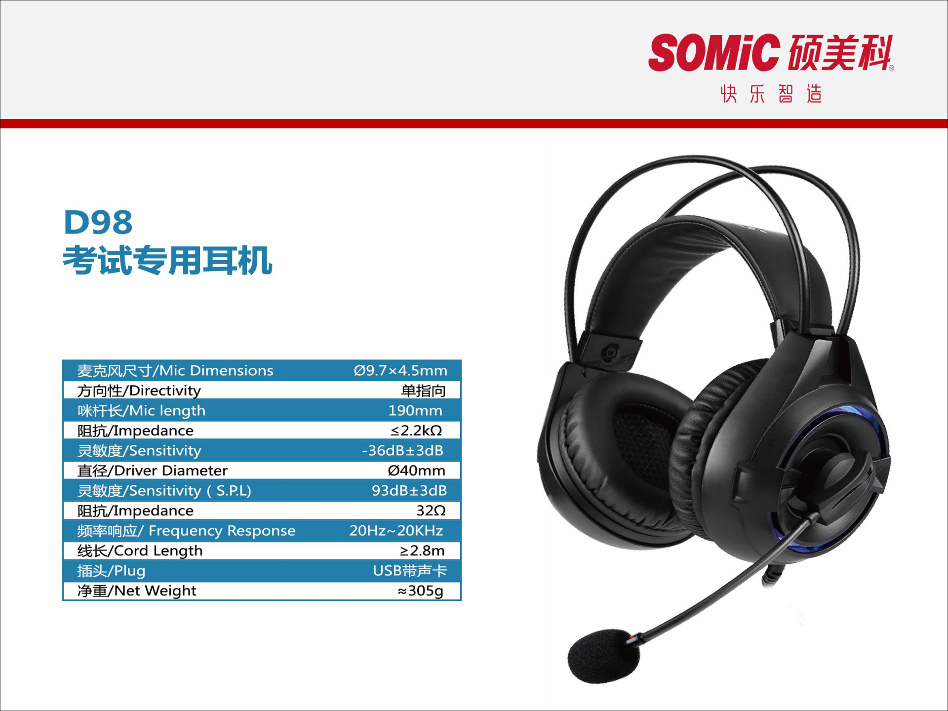 產品詳細介紹碩美科D98標準化考場聽說讀寫狀態提示存儲耳機 1.實時狀態檢測功能,對耳機的工作狀態進行實時監測。考試過程中若發生耳機異常故障,能夠被監考系統實時獲取;并能夠通過耳機指示燈提醒讓監考老師快速定位考試; 2.內置加密存儲,總容量不少于8G,其中加密存儲區不少于5G,能夠對考試程序、試題、答案進行安全加密存儲。保證考試安全; 3.具有唯一編碼,可見且能被程序識別,可溯源考生答案來源; 4.提供可編程接口(SDK)至少包括唯一編碼管理,狀態指示燈控制、拾音器狀態檢測、數據加密存儲管理等,方便系統的定制開發; 5.特殊綠色指示燈,耳機工作狀態一目了然; 6.高效屏蔽單指向麥克風,抗干擾,拾音清晰; 7.旋轉式鵝形管長咪桿,柔軟性強,可自由彎曲,旋轉調控; 8.高性能驅動單元,音質干凈清澈; 9.可拆換大面積耳罩,完善被動隔音降噪。 10.高可靠性設計線材,堅韌不易纏繞。 11.USB免驅動帶聲卡插頭。具有抗干擾磁環。