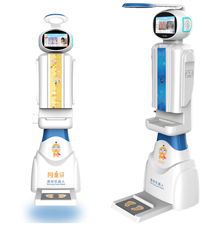 產(chǎn)品詳細(xì)介紹阿童目自主研發(fā)的“晨檢機(jī)器人”集成了智能傳感器、視覺算法、電子電路、大數(shù)據(jù)、互聯(lián)網(wǎng)等先進(jìn)技術(shù),僅需4秒即可完成“自動測溫、手檢、口腔、身高、體重、簽到考勤、拍照留存、實時顯示”等檢測功能和“咳嗽、外傷、指甲”等輔助功能。