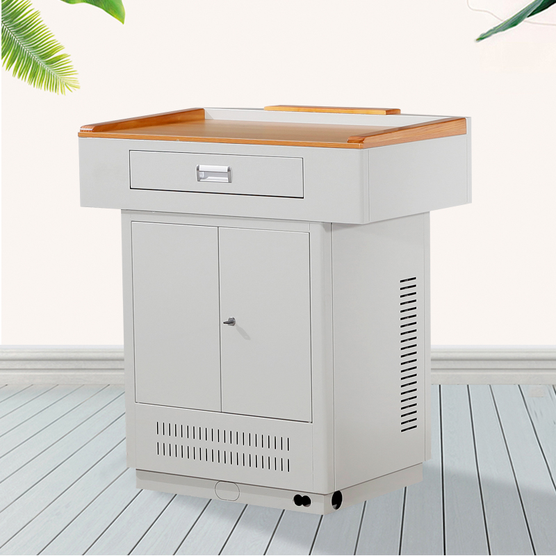 產(chǎn)品詳細介紹1. 外形尺寸:總體尺寸900*600*1000mm; 2. 上體部分:長度900mm,寬度600mm,高度230mm; 3. 下體部分:長度650mm,寬度520mm,高度760mm; 4. 底座部分:長度610mm,寬度480mm,高度60mm。 2.講臺桌面采用平面設(shè)計,可以放置不同型號筆記本電腦,桌面四周半包圍結(jié)構(gòu),有效防止物品滑落; 3.講臺前面設(shè)置隱藏式抽拉儲物盒(長*寬*高:545*260*65mm),可放置筆記本電腦、鍵盤鼠標、板擦、粉筆等教學(xué)用具; 4.講臺扶手,背板采用高檔橡木制成,表面噴高檔防滑漆,使用起來光滑度高,桌面顏色為木紋色,使整個講臺看起來美觀大方; 5.整體沖壓成型,整體結(jié)構(gòu)緊湊,空間設(shè)計合理; 6.講臺下柜前后門均可打開,前門為對開門,方便放設(shè)備,后門為抽拉門,節(jié)省空間,整個下柜可作為儲物柜使用; 7.全部的加工件均采用模具成型,激光切加工而成、配合優(yōu)良的焊接工藝,保障尺寸精度及各部件一致性,保證安裝的方便快捷。 8,整個講臺采用上下分體,拼裝組成,大大的減少了運輸成本。 9,產(chǎn)品通過通過國家ISO9001:2000國際質(zhì)量管理體系認證、環(huán)境管理體系認證、職業(yè)健康安全管理體系認證,省級以上質(zhì)檢報告。 |