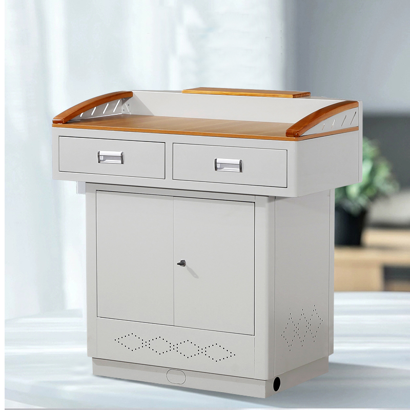 產(chǎn)品詳細(xì)介紹1. 外形尺寸:總體尺寸1000*600*1000mm; 2. 上體部分:長(zhǎng)度1000mm,寬度600mm,高度230mm; 3. 下體部分:長(zhǎng)度750mm,寬度520mm,高度760mm; 4. 底座部分:長(zhǎng)度710mm,寬度480mm,高度60mm。 2.講臺(tái)桌面采用平面設(shè)計(jì),可以放置不同型號(hào)筆記本電腦,桌面四周半包圍結(jié)構(gòu),有效防止物品滑落; 3.講臺(tái)前面設(shè)置并排兩個(gè)隱藏式抽拉儲(chǔ)物盒(長(zhǎng)*寬*高:445*260*125mm),可放置筆記本電腦、鍵盤(pán)鼠標(biāo)、板擦、粉筆等教學(xué)用具; 4.講臺(tái)扶手,背板采用高檔橡木制成,表面噴高檔防滑漆,使用起來(lái)光滑度高,桌面顏色為木紋色,使整個(gè)講臺(tái)看起來(lái)美觀大方; 5.整體沖壓成型,整體結(jié)構(gòu)緊湊,空間設(shè)計(jì)合理; 6.講臺(tái)下柜前后門(mén)均可打開(kāi),前門(mén)為對(duì)開(kāi)門(mén),方便放設(shè)備,后門(mén)為抽拉門(mén),節(jié)省空間,整個(gè)下柜可作為儲(chǔ)物柜使用; 7.全部的加工件均采用模具成型,激光切加工而成、配合優(yōu)良的焊接工藝,保障尺寸精度及各部件一致性,保證安裝的方便快捷。 8,整個(gè)講臺(tái)采用上下分體,拼裝組成,大大的減少了運(yùn)輸成本。 |