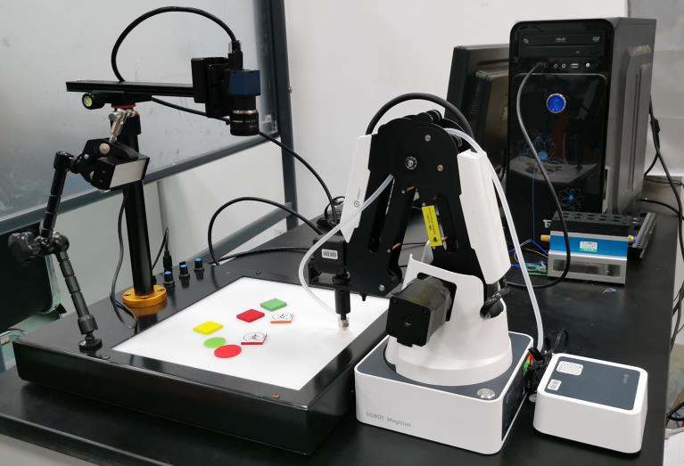 產品詳細介紹本平臺實驗內容囊括幾何變換、Blob分析、特征提取、形態學處理、圖像分割、圖像拼接、SVM、ANN、機械手引導定位等20多個視覺實驗,并將步驟單獨拆解分析,讓學習使用者可以有更深入的理解,加快了使用者的掌握進度;機械手引導方面,從標定開始,一步一步引導,協助學習使用者建立起相機和機械手的坐標關聯性,并且立竿見影,可通過抓取實驗即時反饋結果,利于使用者因地制宜,通過實際情況分析原因,更有針對性和突破性。 平臺既有工程實踐案例,又有針對性的軟件算法專項練習和實踐,能夠滿足多種類型的培養模式要求。