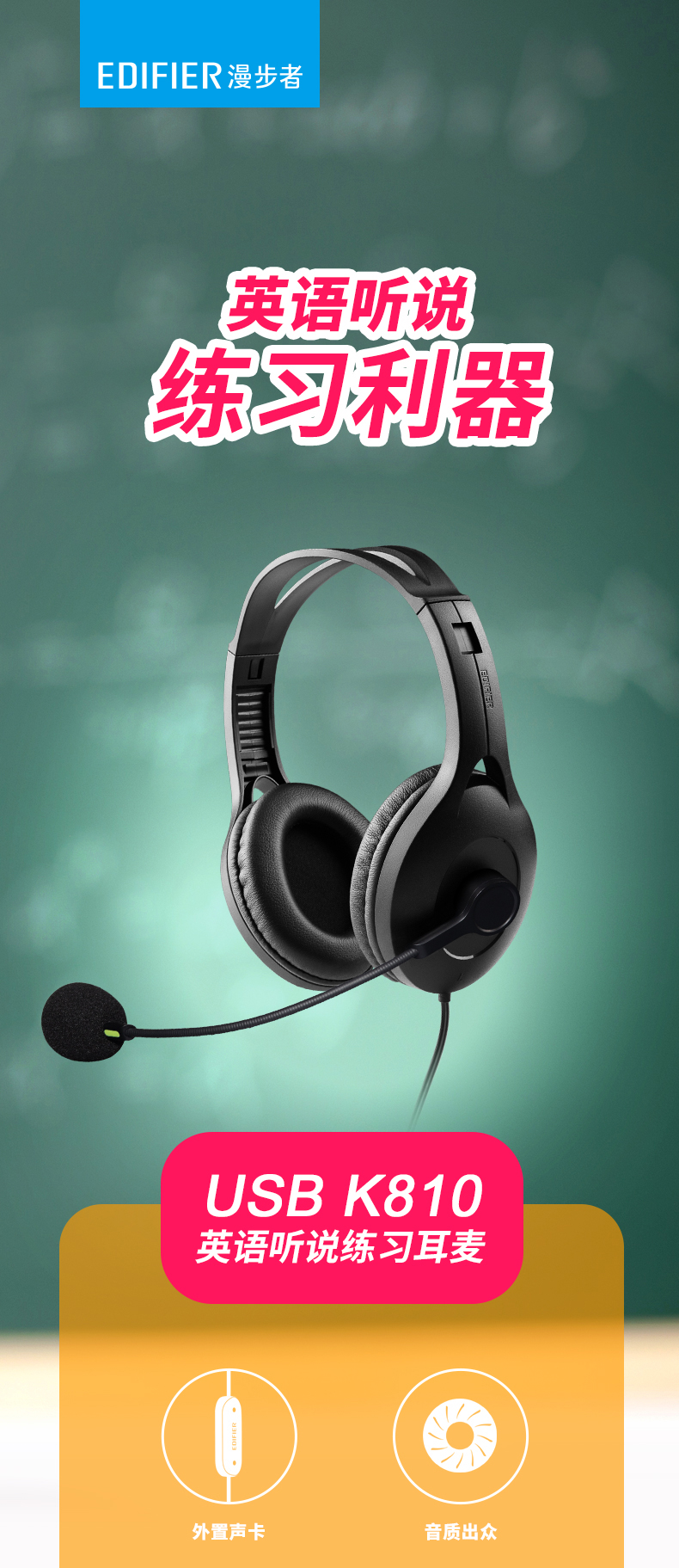 產(chǎn)品詳細(xì)介紹電教室替代考試耳機(jī)給學(xué)生平時(shí)練習(xí)使用 從喇叭到麥克風(fēng),最大程度上模擬專業(yè)考試耳機(jī) 精調(diào)耳機(jī)聲壓,長(zhǎng)效呵護(hù)聽力 專業(yè)外置聲卡,無損傳輸 單指向消噪麥克風(fēng),多人同時(shí)練習(xí)互不影響 |