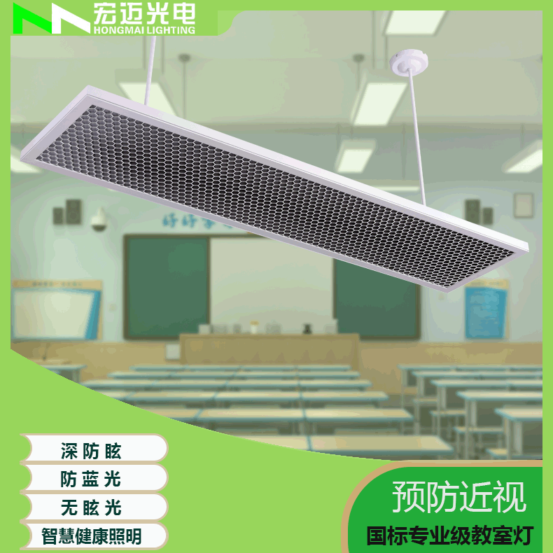 蜂窩格柵教育照明 防藍光高顯指LED教室燈