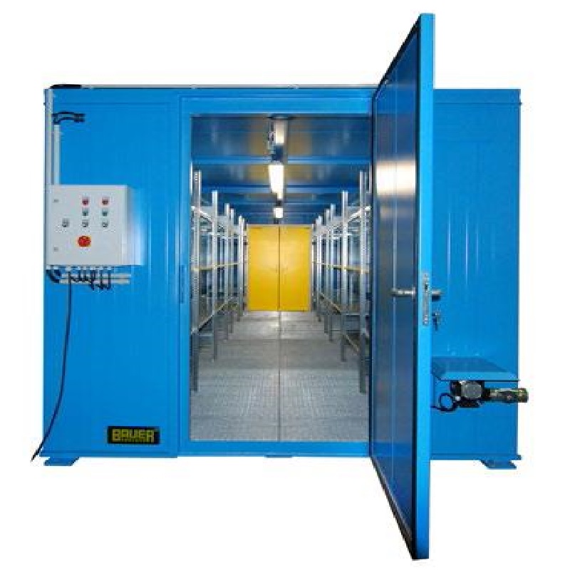 外柜體一頭端部安裝防火防盜門,門的上方有共享聲光報警器、式攝像機各1個,門左側設置可以實現各功能設備自動控制的觸屏式防爆配電箱以及個人防護用品箱;門右側設置弱電箱和清潔用品雜物工具箱;外柜體另一頭端部設置攀爬梯等;防火門靠下方設置有單向百葉進風口,進風口為雙層結構,加裝防蟲網;外柜體*部安裝有風管、消音器、二段式廢氣凈化處理設備、離心風機等功能設備;外柜體內部防火防盜門的正上方設置防爆型緊急指示燈,*部安裝有隔熱板,隔熱板下安裝防爆照明燈;所有電路安裝必須防爆,使用防爆穿線管穿線,線路接頭使用防爆接線盒;外柜體內部儲存分為2大儲存區域,密封區域設置了內風道式PP柜,主要用于存放廢棄液,通過調節風閥和風管,將廢氣通入主排風管道;開放區域設置了開放式貨架,用于存放有包裝的固體廢棄物、包裝瓶等等,貨架兩側設置了一些可調節風量的單向風閥,通過風管將揮發性廢氣通入主排風管道;主排風管道廢氣依次通過功能性設備凈化后排出。外柜體內地板中心設置集液槽和可活動的PP漏液蓋板,漏液蓋板上開有漏液孔,集液槽中部設置漏液管,向外柜體端部穿過框架梁,連接上回收管、回收桶即可收集漏液。柜體內部安裝8只懸掛式6KG裝干粉滅火器,一旦感應到溫度異常,及時噴灑滅火劑進行滅火;柜內安裝防爆型TVOC感應器,一旦*標即可驅動風機以及凈化器工作。觸摸屏可以實現用戶自主設置,同時顯示柜內溫度、濕度及VOC氣體濃度正常與否。