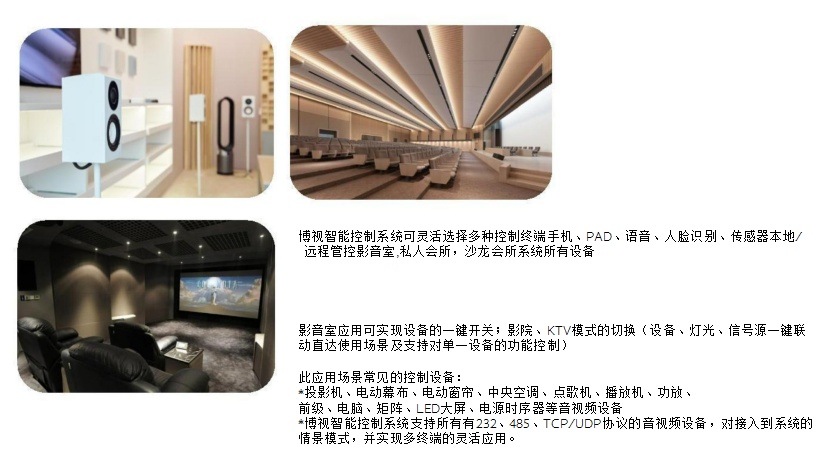 7: 可控設備包括但不僅限于 – 會議系統(tǒng),無紙化系統(tǒng),擴音系統(tǒng),錄播系統(tǒng),中控系統(tǒng),融合系統(tǒng),投影及幕布,拼接顯示屏,燈光管理,電動窗簾,空調的控制,感知設備,電源的管理,播控系統(tǒng)等( 基于RS232/485串口協(xié)議 , TCP/UDP網(wǎng)絡協(xié)議,開關量信號的所有設備)