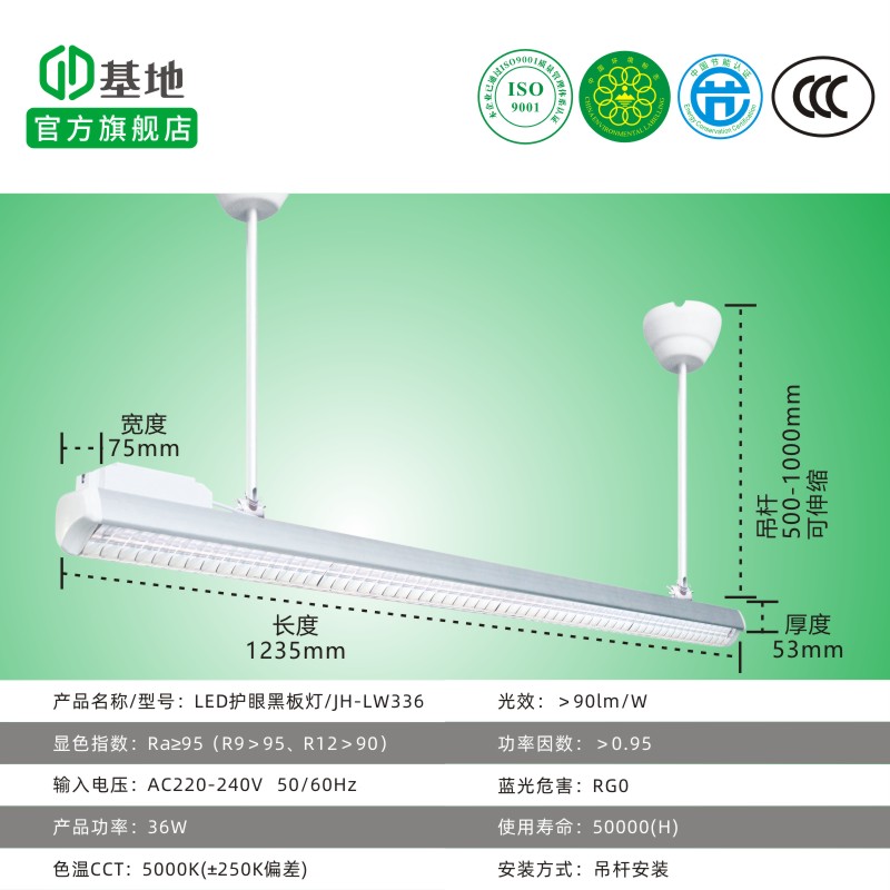產品詳細介紹1、無頻閃、無眩光、無藍光危害(豁免級),綠色健康,不會對眼睛帶來影響; 2、采用透鏡+格柵的防眩光設計(真空電鋁),背部具有安裝滑槽,可支持水平移動,且角度可調節范圍±15°,使黑板達到最佳照度與均勻度可使黑板達到很好的亮度和均勻度;老師抬頭轉身不刺眼; 3、黑板燈為一體式燈具,出 光均勻,燈體背面采用鋁合金材 質,兩邊用塑料件完全包住,光滑平整 4、驅動電源采用外置方案,安裝簡易,易維護; 5、密封式設計,防塵防蚊蟲。 |