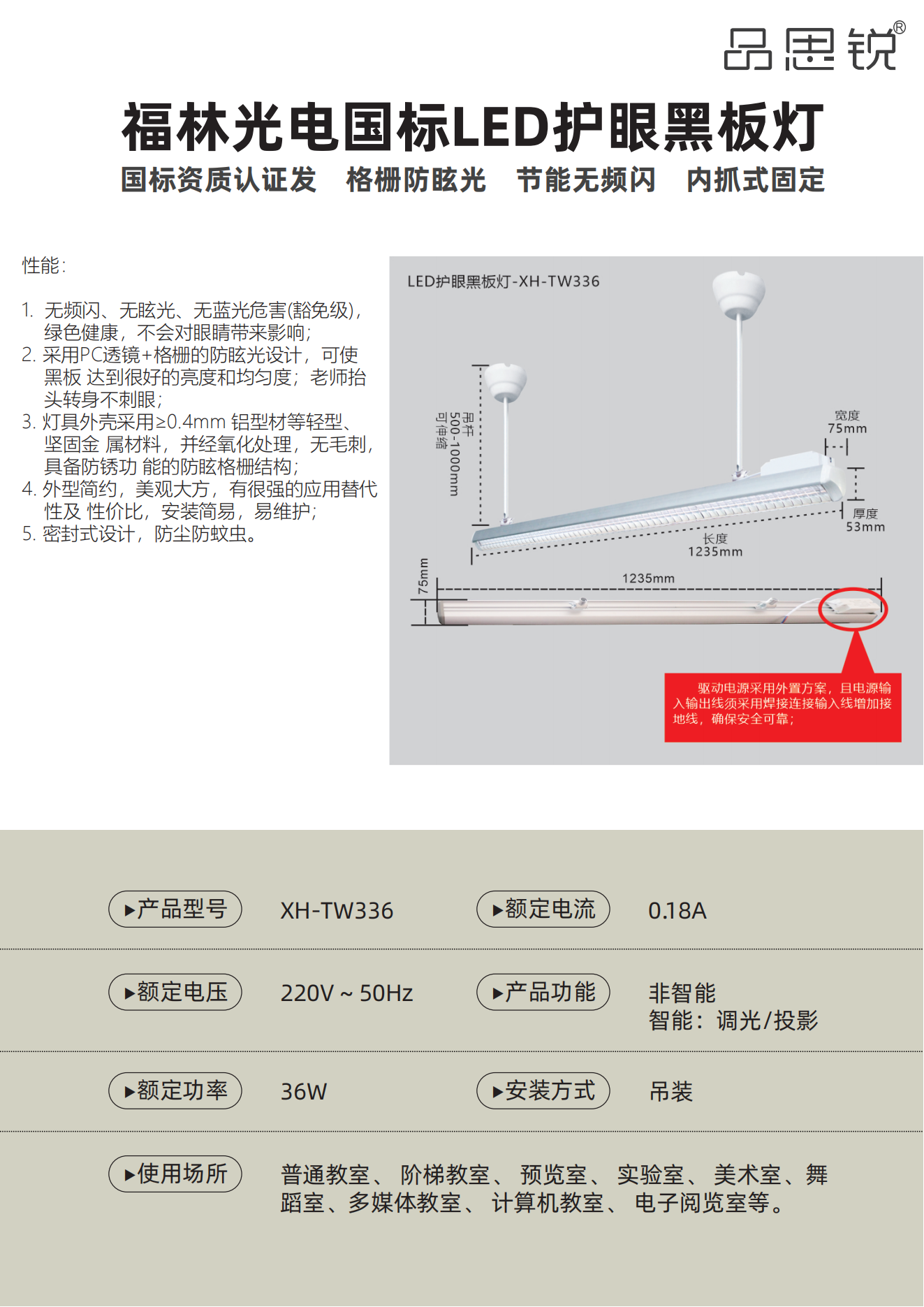 2.采用PC透鏡+格柵的防眩光設計,可使