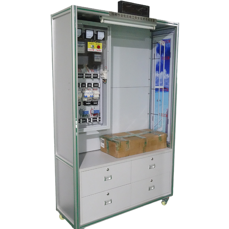 產品詳細介紹1、外形尺寸:1200×550mm×2200mm 2、參數:(1)額定電壓:AC380V±5%(2)額定電流:32A以上(3)頻率:50Hz(4)環境溫度:-10℃~40℃(5)相對濕度:≤80%(25℃)(6)外形尺寸:定制 3、設備配置:柜內裝有單聯開關、雙聯開關、單三相電度表、照明燈、日光燈等各種實訓元器件,且所有器件的接線都在接線端子排上進行接線,從而避免了因長時間在器件本身進行走線而導致其損壞,通過走線槽進行工藝布線。內含:電源開關(單相斷路器3只、三相斷路器1只)、電能表2只、照明燈(白熾燈、日光燈各1個)、熔斷器2個(備注額定電流32A以上)、漏電保護器1個、組合開關1個、單雙聯開關各1個及接線端子若干。 |