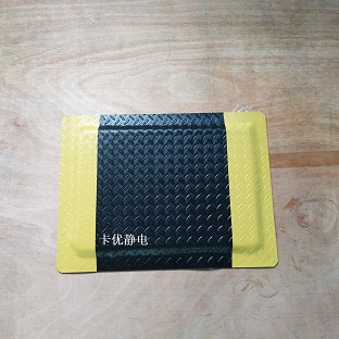 產品名稱:防靜電抗疲勞地墊 產品性能: 采用工藝,精心制作而成,以滿足現代人工作舒適的要求。 1、防靜電或不防靜電可選。 2、柔韌、反彈力強、清潔方便、易于移動。 3、表面為柳葉紋防滑設計,使用方便。 4、可耐酸堿溶劑,弱酸弱堿。 二、產品規格: 厚度:20mm 寬度和長度可選 三層合一定制 色彩:黑色黃邊 棉層: 耐撕耐壓回彈快 執行標準GB/T 17794-2008