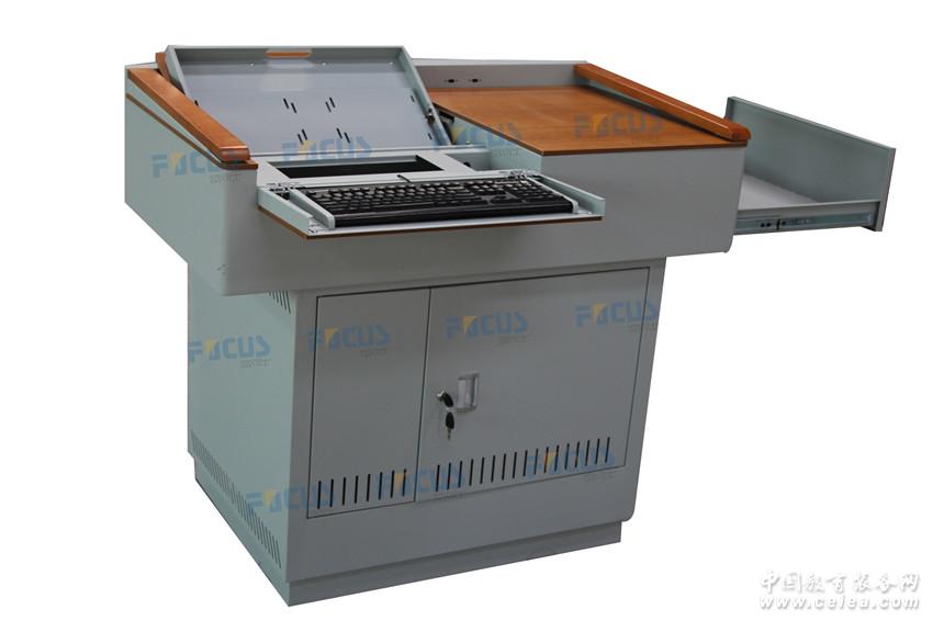 產(chǎn)品詳細介紹參數(shù): 1、講桌采用鋼木結(jié)合構(gòu)造,桌體上部分采用圓弧設(shè)計。講臺整體設(shè)計符合人體力學原理,提供左右木質(zhì)扶手,供使用者扶用。 2、桌面由一把機械鎖控制,采用環(huán)環(huán)相扣設(shè)計,顯示器蓋板、鍵盤和展示臺抽屜逐步打開。操作更簡易,使用更安全。 3、講桌桌面采用木質(zhì)耐劃臺面,防火、防塵、防水、耐刮花,整體布局簡潔、美觀。 4、講桌主體材料采用1.5mm冷軋鋼板,其他輔助部門采用1.2mm冷軋鋼板。桌子正面可根據(jù)客戶需求絲印學校LOGO。 5、講桌上下層采用分體式設(shè)計,桌面部分和桌體部分自成一體,方便進出設(shè)計比較窄的教室門。講桌內(nèi)置固定螺絲孔位,安裝簡單,安全防盜;獨立包裝,運輸輕便。 6、顯示器蓋板和鍵盤部分采用翻轉(zhuǎn)式設(shè)計。顯示器蓋板可裝置17-19寸液晶寬屏顯示器;鍵盤下面放置一體中控或者分體中控系統(tǒng)。 7、右側(cè)抽屜可放置實物展示臺,關(guān)閉后,所有設(shè)備都隱藏在講臺內(nèi);。 8、桌面集成USB接口模塊兩個,可預留VGA\網(wǎng)絡(luò)\Audio接口。 9、講桌桌體下層內(nèi)部采用標準機柜設(shè)計,帶層板,所有設(shè)備可整齊固定。 10、關(guān)閉尺寸:1150*680*950(長寬高)MM。 11、產(chǎn)品通過ISO9001:2008質(zhì)量管理體系認證,通過國家3C認證,通過歐盟CE出口認證,通過ISO14001環(huán)保認證,擁有獨立的知識產(chǎn)品,專利號為: ZL 201130492984.7(國家知識產(chǎn)權(quán)網(wǎng)可查) 12、講桌、中控為同一品牌。 |