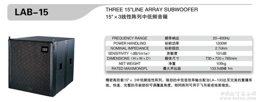 產品詳細介紹精密高效能15*3中低頻線性陣列,強勁的中低音效率輸出配合LA-100達至完善的系統,快速、完整的吊裝部分可調。