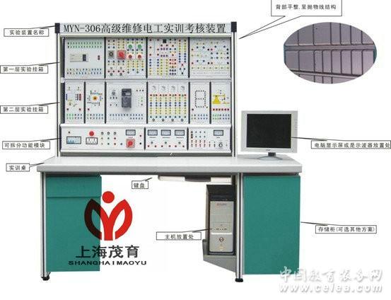 產品詳細介紹一、概述 根據勞動和社會保障部頒發的“工人等級標準”和“職業技能鑒定”的要求而設計的,MYN-306高級維修電工實訓考核裝置適用于《初級維修電工》、《中級維修電工》和《高級維修電工》教材要求的電氣控制電路,通過裝置配備的PLC可編程控制器和變頻調速器及相應實訓模塊的訓練,快速掌握課程要求的實際應用技術和操作技能,具有針對性、實用性、科學性和先進性,MYN-306高級維修電工實訓考核裝置能滿足中、高級維修電工考核大綱的要求,是各勞動職業技能鑒定部門、大中專院校、技校中、高級維修電工技能考核的理想設備。 二、技術性能 1.輸入電壓:三相四線制380V±10% 50Hz 2.工作環境:環境溫度范圍為-5~+40℃ 3.裝置容量:<1KVA 4.安全保護:漏電動作電流≤30mA 過流保護、熔斷器保護 5.外形尺寸:1650mm×660mm×1740mm 三、實訓裝置的基本配置及功能: 本實訓裝置由實訓桌、實訓掛箱、實訓器材等組成。 3.1 實訓桌 3.1.1 實訓桌主體結構為鋁合金; 3.1.2 存儲柜:放置工具及實驗模塊,350mm×700mm×700mm; 數量:2個 3.1.3:桌面為防火、防水、耐磨高密度板,造型美觀大方,堅固耐用,前部厚度為50mm。 3.1.4:功能模塊主體結構采用鋁合金,可脫離實驗臺單獨作為一個實驗儀器使用,實驗掛箱主體結構為鋁合金(避免采用鐵結構,笨重不方便學生操作),結構及大小尺寸統一。 3.1.5:防塵裝置及標題架:標題架1230mm×140mm×80mm;1套。實驗臺在使用時,防塵裝置可卷到標題架內,實驗臺未在使用時,防塵裝置可把實驗模塊全部保護,在裝置的下方是一條長1.米多的磁條 3.1.6:電腦:聯想揚天A4600K T2900D M7150 3.2 功能模塊(每個功能模塊可脫離實驗臺單獨作為一個實驗儀器使用) 3.2.1:三相電源實驗儀器:外部以采用3mm鋁合金長方體為主體結構,大小為300mm×160mm×165mm。三相380V輸出、直流220V輸出。三相380V輸出、直流220V輸出。設有外殼接地保護、缺相指示、急停保護、多次熔斷絲保護、漏電保護等可脫離實驗臺單獨作為一個實驗儀器使用。獨立編號為T01 3.2.2:混合電壓輸出實驗儀器:外部以采用3mm鋁合金長方體為主體結構,大小為300mm×160mm×165mm。每個輸出接口有3mm和6mm的兩種,24V直流穩壓可調輸出,指針電表指示,設有正負極提示LED,防止電源極性接反;0~240V交流輸出,又可作雙9V、雙12V、雙18V輸出,。可脫離實驗臺單獨作為一個實驗儀器使用獨立編號T08。 3.2.3:恒流源:外部以采用3mm鋁合金長方體為主體結構,大小為300mm×160mm×165mm。每個輸出接口有3mm和6mm的兩種,0-20mA-500mA。分5檔,數顯電表顯示。含單次脈沖,開關電源正負12V正負5V,后背為六孔220V插座。可脫離實驗臺單獨作為一個實驗儀器使用獨立編號T29。 3.2.4:信號發生器:外部以采用3mm鋁合金長方體為主體結構,大小為300mm×160mm×165mm。每個輸出接口有3mm和6mm的兩種,1、波形有正弦波、方波、三角波;2、衰減級度0—20db—(40db);3、設有頻率計一只,六位數顯,測量范圍可達0-8M,支持外測。可脫離實驗臺單獨作為一個實驗儀器使用獨立編號T11。 3.3:實驗模塊: 3.3.1: 觸摸屏實驗模塊:外部以采用3mm鋁合金長方體為主體結構,大小為300mm×300mm×110mm。該觸摸屏是一套以嵌入式低功耗CPU為核心(ARM CPU,主頻400MHz)的高性能嵌入式一體化觸摸屏。該產品設計采用了7英寸高亮度TFT液晶顯示屏(分辨率800×480),四線電阻式觸摸屏(分辨率1024×1024)。3.3.2:變頻器實驗模塊:外部以采用3mm鋁合金長方體為主體結構,大小為300mm×300mm×110mm。采用三菱FR-D720S0-0.4K,輸入輸出接口引至面板,電源獨立開關控制。 3.3.3:PLC主機實驗模塊:外部以采用3mm鋁合金長方體為主體結構,大小為300mm×300mm×110mm。采用FX1N-40MR,輸入輸出接口引至面板,電源獨立開關控制。 3.3.4:通訊模塊:采用三菱通訊模塊,與變頻器通訊使用 3.3.5:指令編程模塊:外部以采用3mm鋁合金長方體為主體結構,大小為150mm×300mm×110mm。 有5個大指示燈的紅色黃色綠色白色各不少于3個,按鈕不少于8個開關不8個輸入輸出借口全部引至面板,接口采用四種不同顏色。 3.3.6:四節傳送帶的控制:外部以采用3mm鋁合金長方體為主體結構,大小為150mm×300mm×100mm,面板顏色為彩色,至少3種顏色以上,接口插座采用四種不同顏色。 3.3.7:電動機的自動控制:外部以采用3mm鋁合金長方體為主體結構,大小為150mm×300mm×100mm,面板顏色為彩色,至少3種顏色以上,接口插座采用四種不同顏色。 3.3.8:五相步進電機控制:外部以采用3mm鋁合金長方體為主體結構,大小為150mm×300mm×100mm,,面板顏色為彩色,至少3種顏色以上,接口插座采用四種不同顏色。 3.3.9:多層電梯的控制:外部以采用3mm鋁合金長方體為主體結構,大小為150mm×300mm×100mm,面面板顏色為彩色,至少3種顏色以上,接口插座采用四種不同顏色。(輸入輸出接口不少于20個) 3.3.10:十字路交通燈:外部以采用3mm鋁合金長方體為主體結構,大小為150mm×300mm×100mm,,面板顏色為彩色,至少3種顏色以上,接口插座采用四種不同顏色。(輸入輸出接口不少于12個) 3.3.11:天塔之光的控制:外部以采用3mm鋁合金長方體為主體結構,大小為150mm×300mm×100mm,面板顏色為彩色,至少3種顏色以上,接口插座采用四種不同顏色。(輸入輸出接口不少于14個)。 3.3.12:水塔自動供水:外部以采用3mm鋁合金長方體為主體結構,大小為150mm×300mm×100mm,面板顏色為彩色,至少3種顏色以上,接口插座采用四種不同顏色。 3.3.13:液體混合控制:外部以采用3mm鋁合金