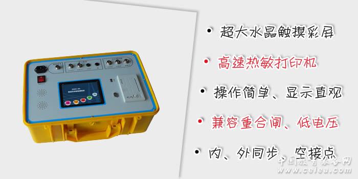 DL/T 846.3-2004 《高電壓測試設(shè)備通用技術(shù)條件 第3部分:高壓開關(guān)綜合測試儀》 ZGKC-6A 高壓開關(guān)動特性測試儀 使用手冊.pdf ZGKC-6A 高壓開關(guān)動特性測試儀 技術(shù)規(guī)范書.pdf (注意:右鍵目標(biāo)另存為下載) 高壓開關(guān)機械特性測試儀、開關(guān)機械特性測試儀、高壓開關(guān)綜合測試儀、斷路器動特性測試儀、斷路器機械特性測試儀、斷路器綜合測試儀、高壓開關(guān)時間特性測試儀、高壓開關(guān)特性測試儀、開關(guān)特性測試儀、斷路器測試儀、開關(guān)機械特性測試儀、開關(guān)參數(shù)測試儀 高壓斷路器是電力系統(tǒng)中最重要的控制設(shè)備之一。電網(wǎng)中高壓斷路器的運行數(shù)量最多,運行條件和技術(shù)要求比較復(fù)雜,其運行可靠性不僅關(guān)系到高壓斷路器本身,而且影響到其它設(shè)備乃至整個電網(wǎng)。因此,對高壓斷路器的動特性進行測試是一項很重要的工作,但采用傳統(tǒng)的方法對高壓斷路器進行動特性測試時存在操作復(fù)雜、測試精度低等缺點,為了解決這些問題,我們開發(fā)了ZGKC-6A高壓開關(guān)動特性測試儀。 超大水晶觸摸彩屏、高速熱敏打印機 5.7寸640×480彩色觸摸屏,人性化交互式水晶界面,圖文顯示,界面直觀,便于現(xiàn)場人員操作和使用; 高速熱敏打印機,方便現(xiàn)場打印試驗數(shù)據(jù)和曲線; 集成超強性能直流電源 集成操作電源,無須現(xiàn)場二次電源,現(xiàn)場使用更加方便快捷; 電源電壓30V~300V可調(diào),電流20A,連續(xù)工作時間3s; 三種試驗完美實現(xiàn) 常規(guī)試驗,測出開關(guān)的合分閘時間、彈跳時間、同期時間;測出開關(guān)的剛合分速度、最大速度、平均速度、開距、超程等速度數(shù)據(jù); 重合閘試驗,測出開關(guān)重合閘的分合、合分、分合分的時間數(shù)據(jù); 低電壓試驗,測出合分線圈的電壓動作值,電源電壓可連續(xù)調(diào)節(jié); 三種合分閘控制方式 支持內(nèi)同步方式控制,內(nèi)部電源輸出直流電壓給合、分閘線圈; 支持外同步方式控制,外部電源提供電壓給合、分閘線圈; 支持空節(jié)點同步方式控制,開關(guān)自身電源提供電壓給合、分閘線圈,內(nèi)部提供兩路無源空接點; 具有錄波功能 可對應(yīng)時間坐標(biāo)顯示斷口狀態(tài)—時間曲線、行程—時間(S-t)曲線、線圈電流—時間(I-t)曲線,有利于對開關(guān)機構(gòu)故障的準(zhǔn)確判斷。 大容量存儲器,支持U盤內(nèi)置或外置 帶4G容量的U盤,可海量存儲現(xiàn)場數(shù)據(jù),U盤可選內(nèi)置方式或外置方式;儀器具有1個標(biāo)準(zhǔn)USB接口,易導(dǎo)出試驗數(shù)據(jù);U盤外置方式下用于插U盤,U盤內(nèi)置方式下,直接連接PC機; 同測6路斷口1路速度1路電流 可測試6斷口數(shù)據(jù),內(nèi)部抗干擾電路可以抵御現(xiàn)場感應(yīng)的10kV高壓; 可測試1路速度,配備直線傳感器、角速度等傳感器,幾乎涵蓋所有型號開關(guān)的測試; 在內(nèi)同步方式時,可測試1路通過合、分閘線圈的電流; 配備PC機上層軟件 PC機上層軟件可以打開試驗數(shù)據(jù),即可以管理分析試驗數(shù)據(jù),也可以生成試驗報告、導(dǎo)出EXCEL數(shù)據(jù)等功能; 內(nèi)置抗干擾電路 內(nèi)部抗干擾電路可以滿足500kV變電站內(nèi)可靠使用,保護電路能保證儀器及人員安全、儀器并能穩(wěn)定、準(zhǔn)確測試; 防塵防水工程塑料密封箱 采用防塵、防水、防腐工程塑料密封箱,體積小,重量輕,便于攜帶。高壓開關(guān)動特性測試儀