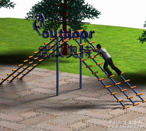 拓展器材產品介紹:三道鋼架云梯,體能與技巧的結合,需要翻越。