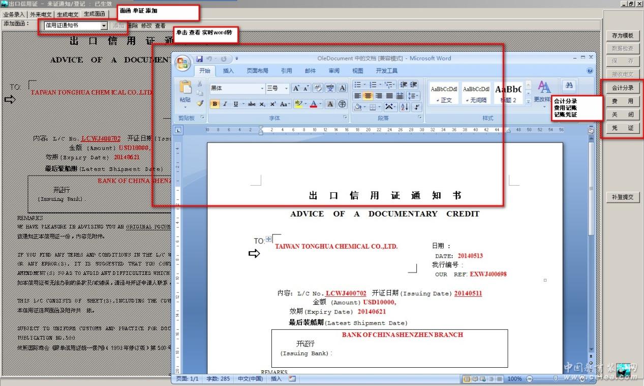 (1)先進的業務處理模式:采用境外先進的押匯中心模式集中處理業務。單據及授權由押匯中心集中處理,客戶業務受理、相關業務憑證、報單、客戶通知、日終處理由客戶開戶行處理;