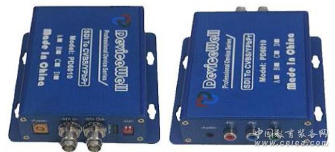 產(chǎn)品詳細(xì)介紹產(chǎn)品簡(jiǎn)介 中帝威(DeviceWell)高清視頻轉(zhuǎn)換器,一款專用于3G/HD/SD SDI 信號(hào)轉(zhuǎn)換為PbPr/CVBS 信號(hào)的設(shè)備。設(shè) 備集成3G/HD/SD-SDI 接收器及PbPr/CVBS 編碼器,可方便的將3G/HD/SD-SDI 信號(hào)轉(zhuǎn)為PbPr 或CVBS 信號(hào). 同時(shí)PD6010 還可以將3G/HD/SD-SDI 信號(hào)中的音頻解嵌,輸出到模擬端口中.此外,PD6010 還支持下變換功能, 輸入為高清時(shí),CVBS 可設(shè)定為"下變換"輸出.