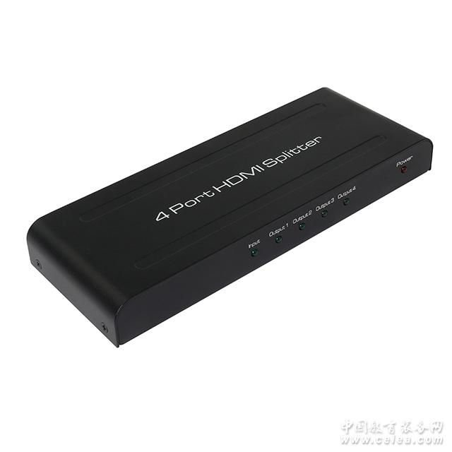 產品詳細介紹HDMI分屏器1托4 連接與操作: 1.通過一條HDMI線纜,把高清信號源和分配器的輸入口連接起來。 2.通過HDMI線纜,把分配器的輸出端與顯示器連接起來。 3.把5V的電源和分配器連接起來。