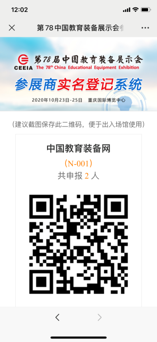 第78屆中國教育裝備展示會將于2020年10月23-25日在重慶國際博覽中心召開。根據政府防疫防控要求,本屆展示會參展商須實名登記,進入展廳需佩戴口罩和參觀證,準備好疫情防控“通信大數據行程卡”綠色行程卡(或“渝康碼”綠碼)及參展商預登記系統生成的“二維碼”。