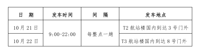 1.循環交通車停靠位置:T2航站樓,國內A到達3號門外機場巴士發車點