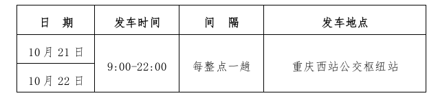 1.循環交通車停靠位置:重慶西站公交樞紐站場內巴士發車點