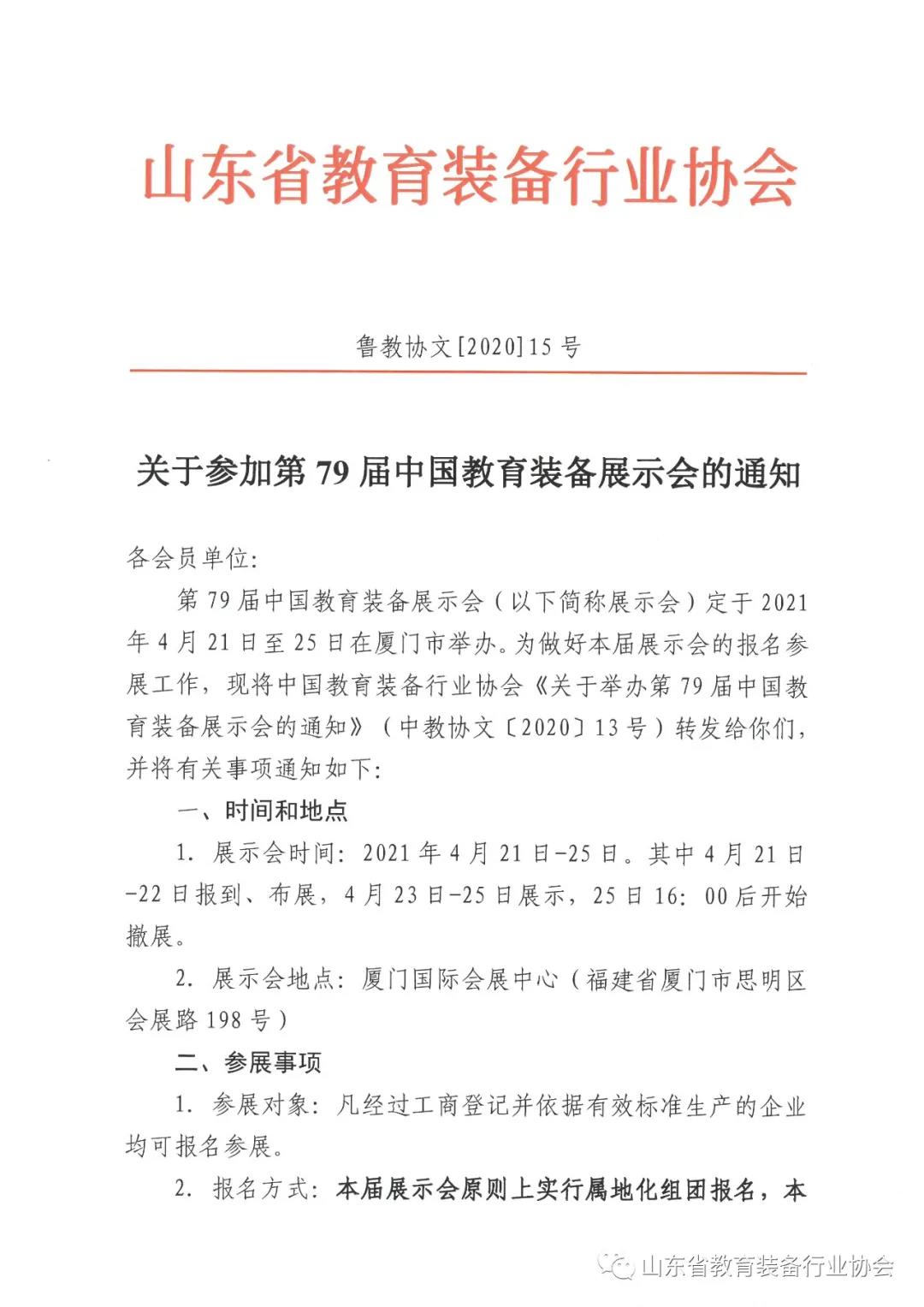山東省教育裝備行業協會關于參加第79屆中國教育裝備展示會的通知