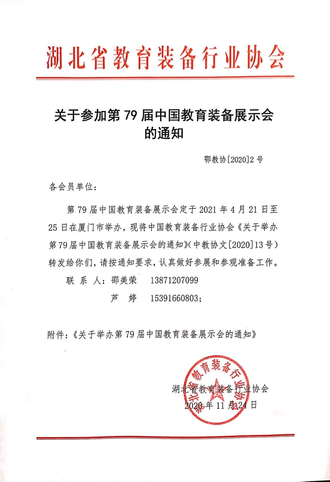 湖北省教育裝備行業協會關于參加79屆中國教育裝備展示會的通知