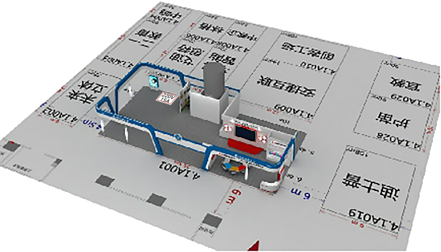 3)展廳位置圖:需標(biāo)注整體展臺(tái)方案在展館內(nèi)所處位置及方向。