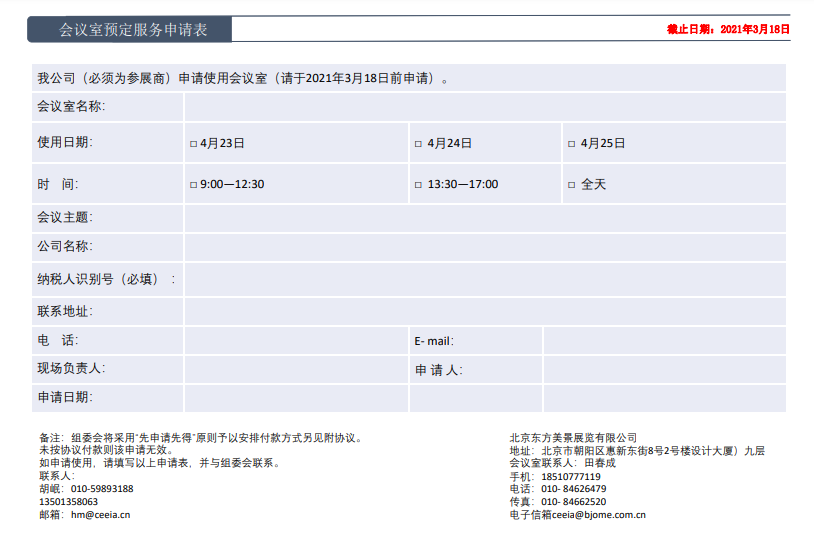 備注:如各參展商選擇會議中心會議室,請直接聯系會議負責人:洪靜瑜 13600908259 進行申請,