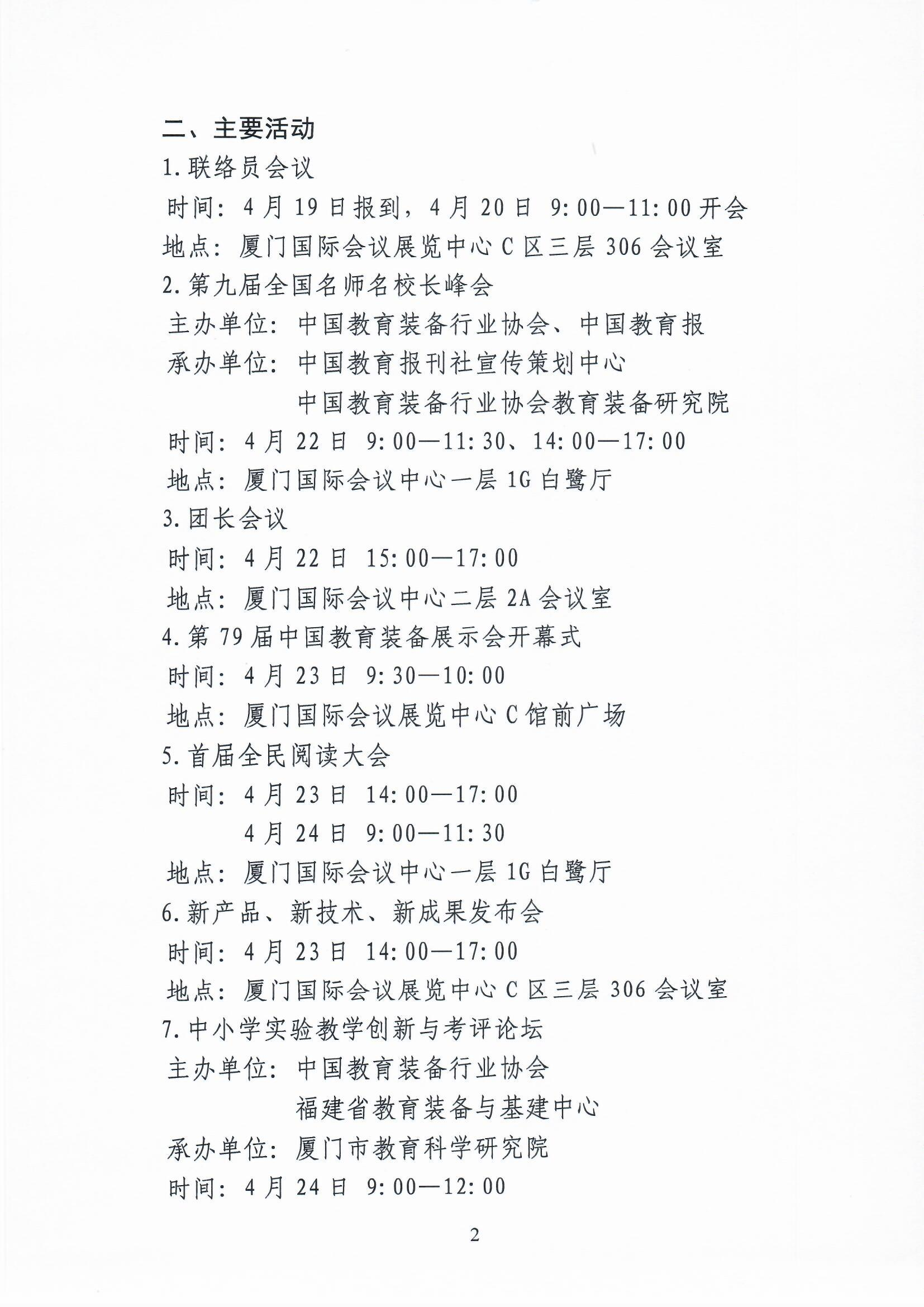 第79屆中國教育裝備展示會(以下簡稱展示會)的各項籌備工作已基本就緒,為保證展示會于2021年4月23日—25日在福建省廈門市順利召開,現將有關事項通知如下: