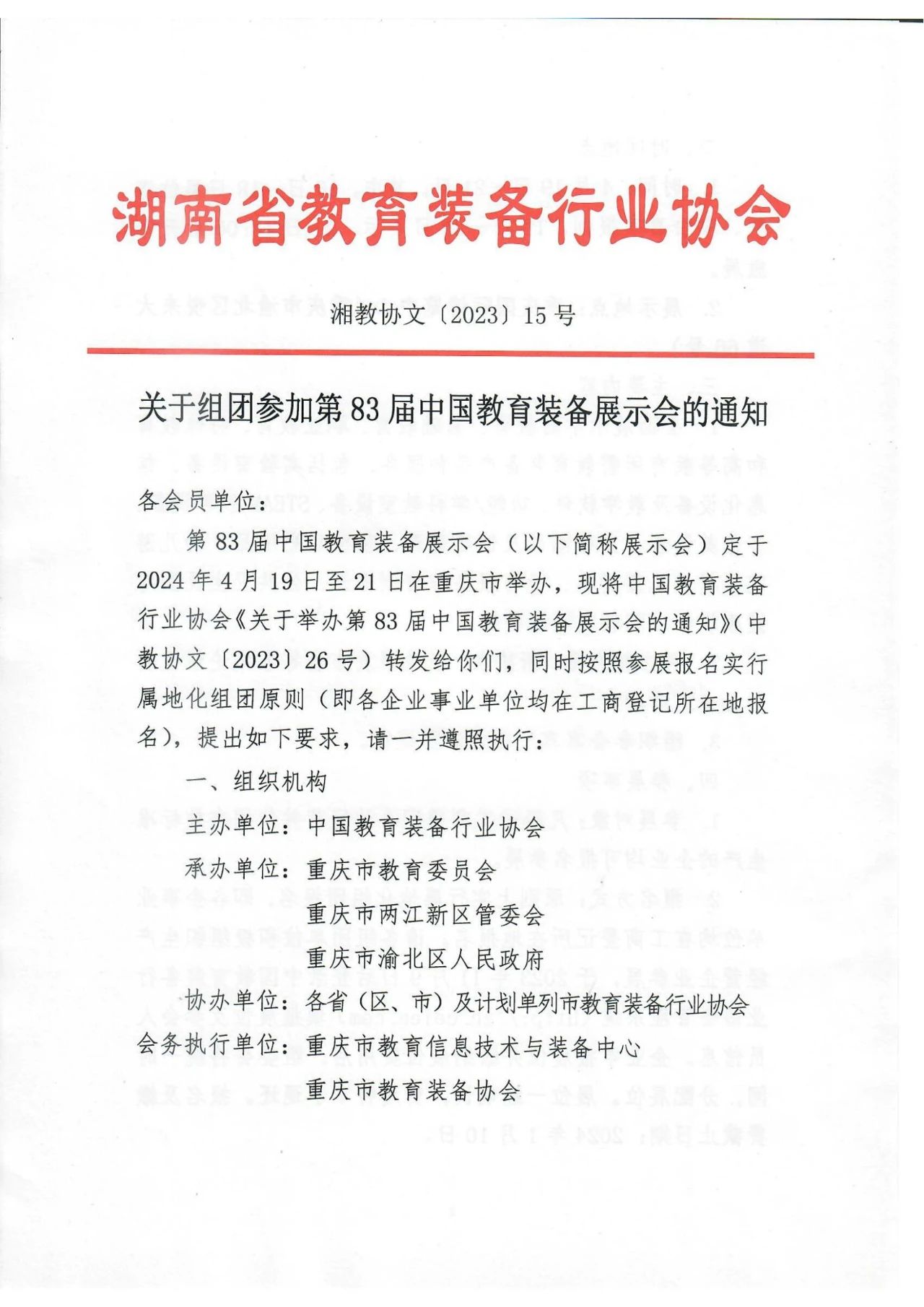 湖南省教育裝備行業(yè)協(xié)會(huì)關(guān)于組團(tuán)參加第83屆中國(guó)教育裝備展示會(huì)的通知