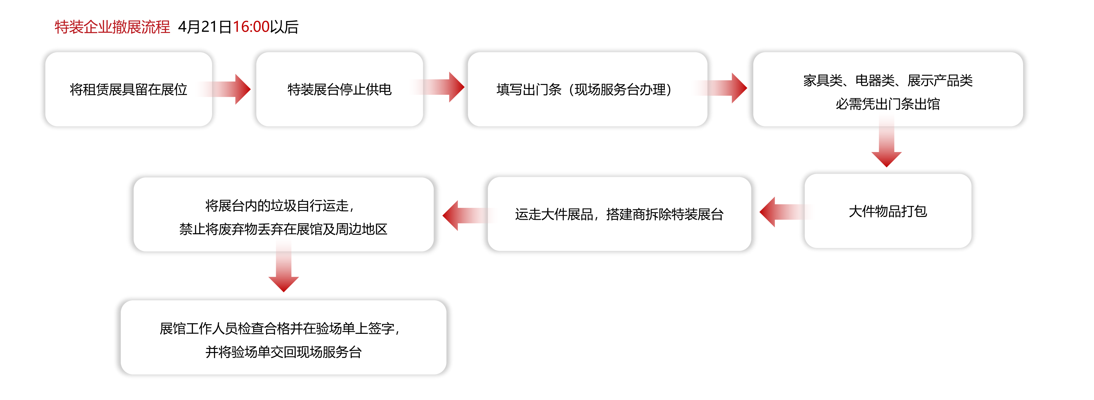 - 提示:每天閉館前,請自覺處理好展位內(nèi)的物品(重要資料可打包寄存或帶走,貴重物品請隨身攜帶),以免丟失,撤展期間尤其要重視。